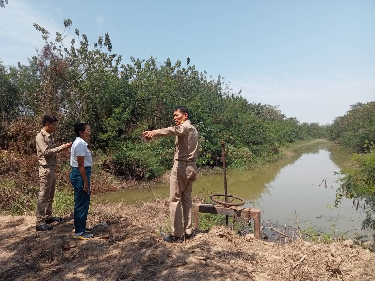 อ.สวรรคโลก จ.สุโขทัยลุยป้องกันยับยั้งภัยแล้ง ปี 2568ในพื้นที่ วันที่ 28 กุมภาพันธ์ 2668 เวลา 11.30 น.เป็นต้นไป นายเอนก วิทยาพิรุณทอง นายอำเภอสวรรคโลก มอบหมายให้นายประพันธ์ศักดิ์ บุตรรัตน์ ปลัดอำเภอหัวหน้ากลุ่มงานบริหารงานปกครอง พร้อมด้วยนายเทิดพงษ์ ตรีพรม ปลัดอำเภอประจำตำบลในเมือง ร่วมกันตรวจสอบพื้นที่รับน้ำในคลองปลาร้า ซึ่งสูบผันน้ำจากคลองยมเก่า หมู่ที่ 10 ตำบลในเมือง ให้ความช่วยเหลือเกษตรกรผู้ปลูกพืชไร่/พืชสวน ตลอดริมคลองปลาร้ากว่า 10 ก.ม.พื้นที่เพาะปลูกกว่า 2,000 ไร่ เกษตรกรผู้ประสบปัญหาภัยแล้ง 3 หมู่บ้าน ได้แก่ หมู่ 5,10 ตำบลในเมือง และหมู่ที่ 12 ตำบลปากน้ำ กว่า 120 รายโดยมีนางสมควร จันทิก ผู้ใหญ่บ้านบ่อแปดร้อย หมู่ที่ 10 ตำบลในเมือง อำเภอสวรรคโลก พร้อมด้วยนางสาวดาวรุ่ง วีระวงศ์ ผู้ช่วยผู้ใหญ่บ้าน เป็นผู้นำลงพื้นที่ตรวจสอบ โดยมีกำหนดสูบน้ำเป็นเวลา 5 วัน ๆ ละ 13 ชั่วโมง ซึ่งจะครบกำหนดในวันที่ 1 มีนาคม 2568 ทั้งนี้ ผู้ใหญ่บ้านได้ประชุมชี้แจงให้กลุ่มเกษตรกรเริ่มการสูบน้ำเข้าแปลงเพาะปลูกพร้อมกันในวันที่ 2 มีนาคม 2568 เพื่อให้เกษตรกรได้แบ่งปันการใช้น้ำอย่างทั่วถึง