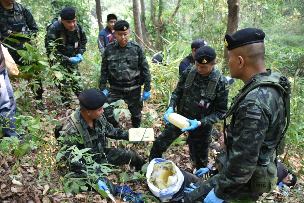 เมื่อวันที่ 1 เมษายน 2569 เวลา 01.20 น.กองกำลังผาเมือง โดย กองร้อยทหารม้าที่ 1 หน่วยเฉพาะกิจทัพเจ้าตาก จัดกำลังพล จำนวน 1 ชุดปฏิบัติการ ทำการเฝ้าตรวจเพื่อป้องกัน และสกัดกั้นการกระทำผิด ตามพระราชบัญญัติให้ใช้ ประมวลกฎหมายยาเสพติด พ.ศ. 2564 บริเวณ บ้านพญาไพรลิทู่ หมู่ที่ 11 ตำบลเทอดไทย อำเภอแม่ฟ้าหลวง จังหวัดเชียงราย ขณะปฏิบัติภารกิจได้ตรวจการณ์พบกลุ่มบุคคลต้องสงสัย จำนวนประมาณ 10 – 15 คน จึงได้แสดงตัวเพื่อขอทำการตรวจค้น แต่กลุ่มบุคคลดังกล่าวได้ใช้อาวุธไม่ทราบชนิดและขนาดยิงใส่ฝ่ายจนท. ทำให้เกิดการปะทะกันประมาณ 5 นาที และได้อาศัยความชำนาญในภูมิประเทศวิ่งหลบหนี ขั้นต้นฝ่ายจนท.ปลอดภัย ยังไม่ทราบการสูญเสียของฝ่ายตรงข้าม เนื่องจากเป็นห้วงเวลากลางคืน จึงจัดชุดปฏิบัติการ เพิ่มเติมอีก จำนวน 3 ชุดปฏิบัติการ วางกำลังควบคุมพื้นที่เกิดเหตุ เพื่อรอการพิสูจน์ทราบเมื่อสามารถตรวจการณ์ได้