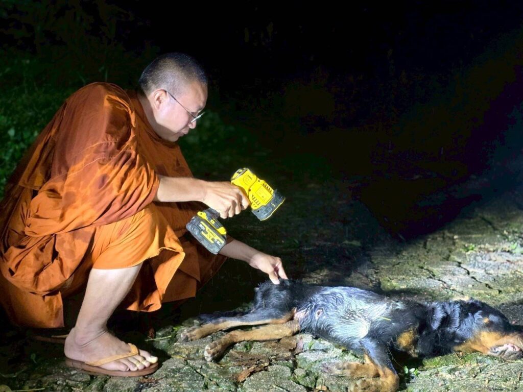 เชียงใหม่-พระครูอ๊อดติดตามใกล้ชิดกรณีช่วยเหลือสุนัขร็อตไวเลอร์ถูกทิ้งกลางป่า 1 ใน 4 บาดเจ็บสาหัส ความคืบหน้าจากการช่วยเหลือ พบกระสุนฝังในร่างกาย ต้องทำการรักษาทางการแพทย์อย่างเร่งด่วน