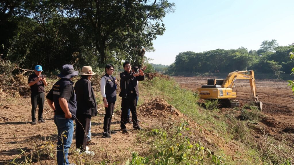 เชียงใหม่-โครงการส่งน้ำและบำรุงรักษาแม่กวงอุดมธารา ลงพื้นที่ร่วมกับส่วนบริหารเครื่องจักรกลที่ 1 สำนักเครื่องจักรกล และเทศบาลตำบลหนองแหย่ง ติดตามการขุดลอดคลองและกำจัดวัชพืชในลำน้ำกวง บริเวณด้านท้ายอาคารระบายน้ำล้นของเขื่อนแม่กวงอุดมธารา ตำบลหนองแหย่ง อำเภอสันทราย จังหวัดเชียงใหม่