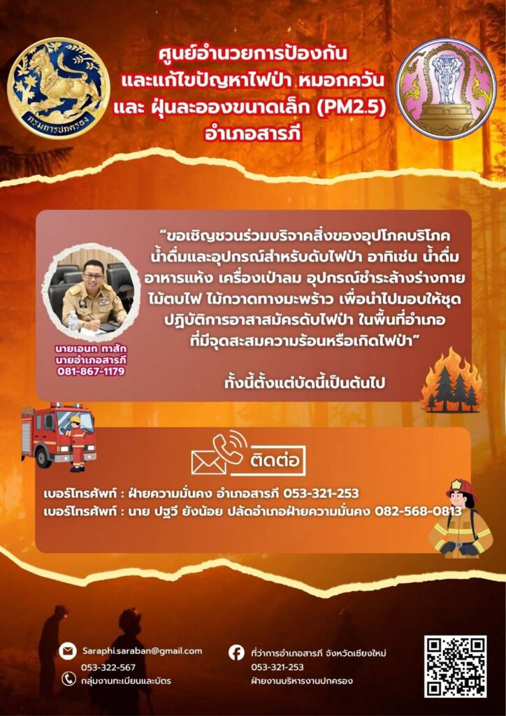 เชียงใหม่-สารภีรวมใจ!นายอำเภอสารภีชวนบริจาคหนุนอาสาดับไฟป่า สู้วิกฤต PM2.5