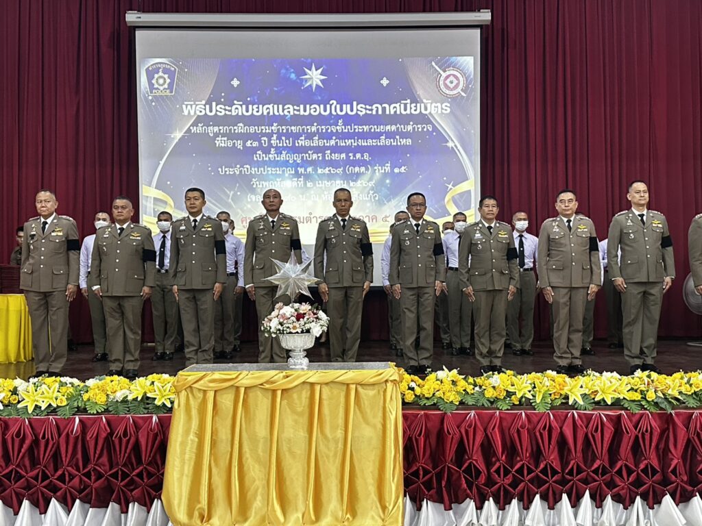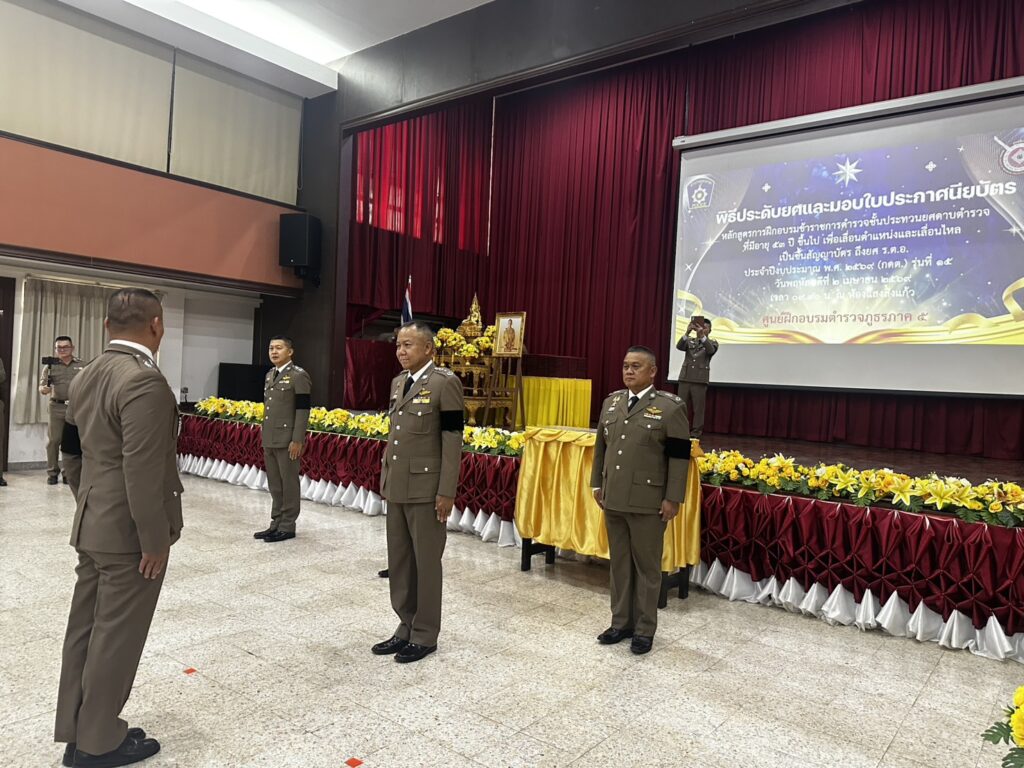 วันพฤหัสบดีที่ 2 เมษายน 2569 เวลา 09.00 น.พล.ต.ท.กฤตธาพล ยี่สาคร ผบช.ภ.5 เป็นประธานในพิธีประดับยศและมอบประกาศนียบัตรผู้สำเร็จการฝึกอบรมข้าราชการตำรวจชั้นประทวนยศดาบตำรวจที่มีอายุ 53 ปีขึ้นไปเพื่อเลื่อนตำแหน่งและเลื่อนยศแบบเลื่อนไหลเป็นชั้นสัญญาบัตรถึงยศร้อยตำรวจเอก ประจำปีงบประมาณ พ.ศ. 2569 (รุ่นที่ 15) โดยมีจำนวนข้าราชการตำรวจเข้ารับประดับยศและรับมอบประกาศนียบัตรผู้สำเร็จการฝึกอบรมรวมทั้งสิ้น จำนวน 511 นาย แยกเป็นข้าราชการตำรวจในสังกัด ภ.5 จำนวน 468 นาย, บช.ก.จำนวน 13 นาย, บช.ปส. จำนวน 6 นาย, สตม. จำนวน 20 นาย และ บช.ทท. จำนวน 4 นาย