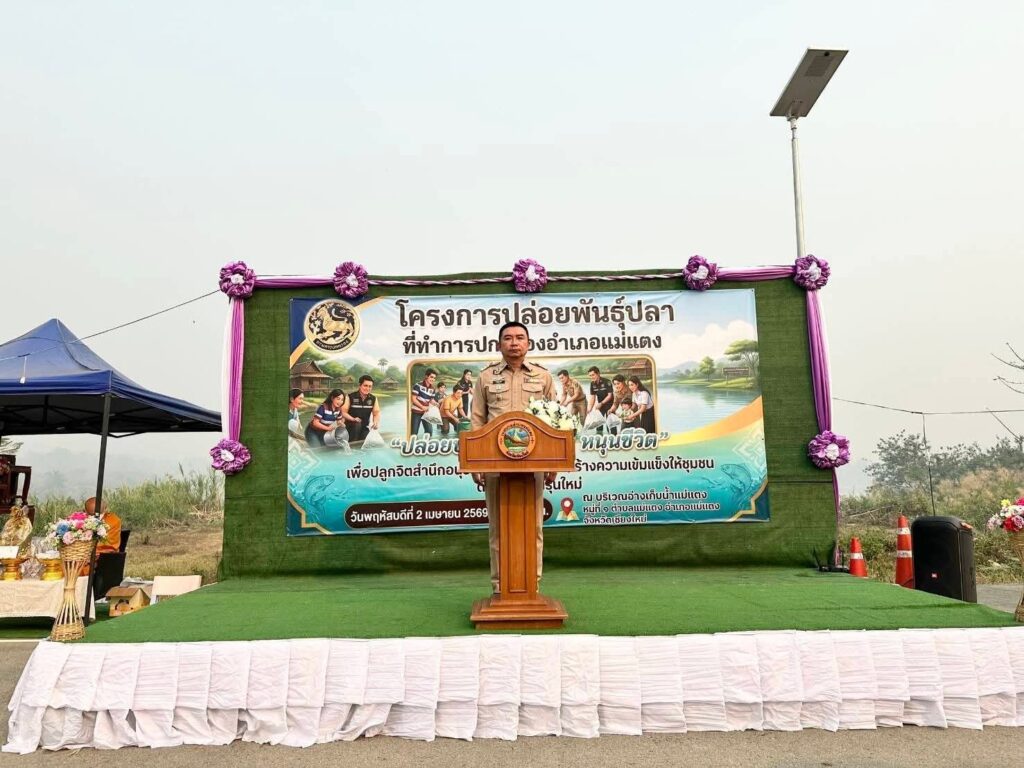 วันที่ 2 เมษายน 2569 เวลา 08.30 น. นายจักรพันธ์ุ ทองอ่ำ นายอำเภอแม่แตง และนางปรมาภรณ์ ทองอ่ำ นายกกิ่งกาชาดอำเภอแม่แตง พร้อมด้วยหัวหน้าส่วนราชการ นายกเทศมนตรีตำบล นายกองค์กรปกครองส่วนท้องถิ่น กำนัน ผู้ใหญ่บ้าน คณะกรรมการกิ่งกาชาดอำเภอแม่แตง และประชาชนทั่วไป ได้ร่วมกันจัดกิจกรรม “ปล่อยปลา สร้างบุญ หนุนชีวิต” มีวัตถุประสงค์เพื่อระดมทุนในการจัดหาเครื่องอุปโภคบริโภคและถุงยังชีพ สำหรับช่วยเหลือผู้พิการ ผู้ยากไร้ และผู้ด้อยโอกาส ให้ได้รับการสงเคราะห์และดูแลอย่างทั่วถึงและมีคุณภาพชีวิตที่ดีขึ้น ตลอดจนเป็นการส่งเสริมและสนับสนุนการดำเนินงานด้านสาธารณประโยชน์ รวมถึงกิจกรรมจิตอาสาในชุมชนให้เกิดความเข้มแข็งและยั่งยืน