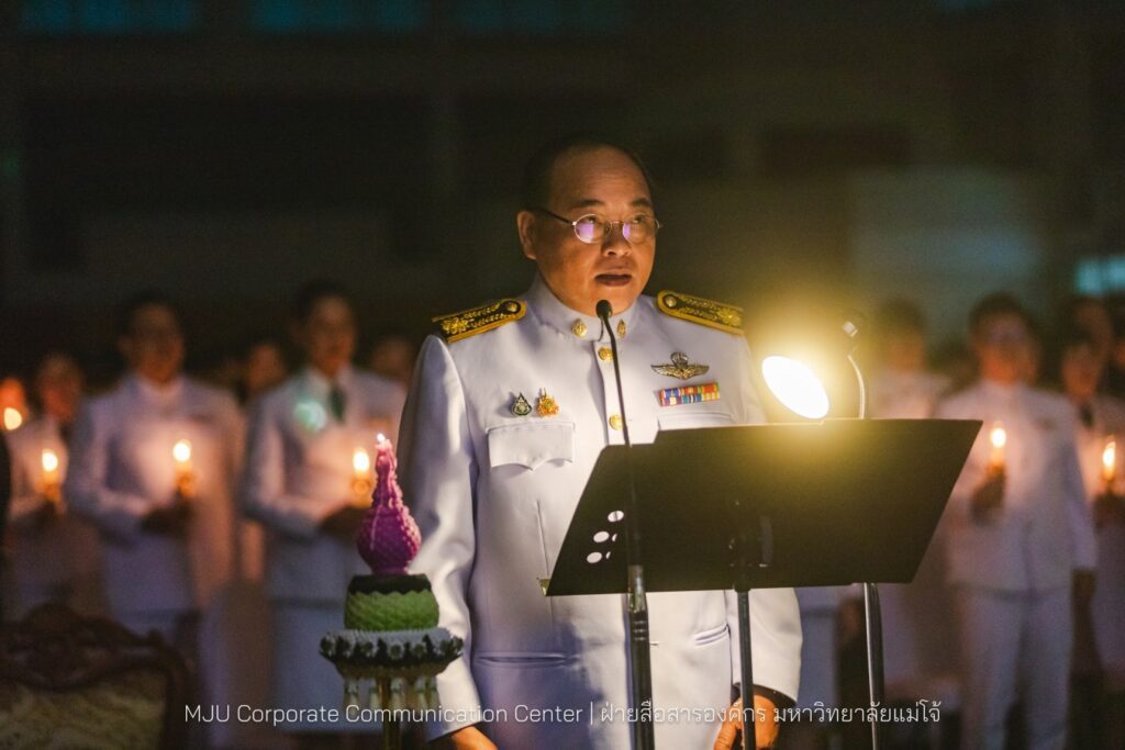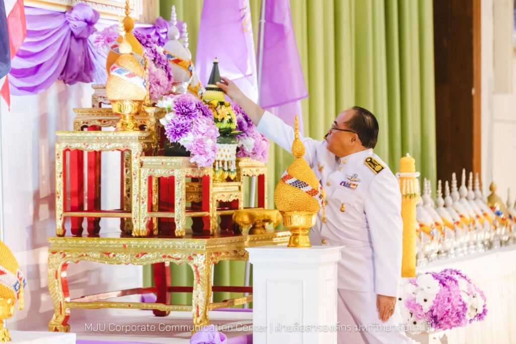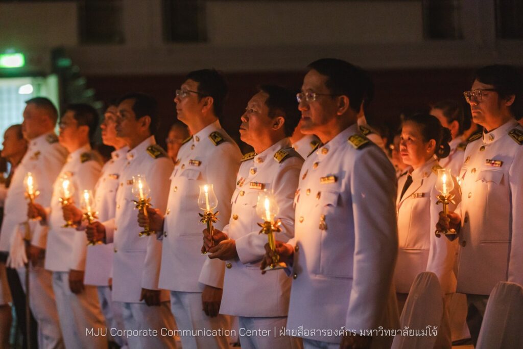 เนื่องในโอกาสวันเฉลิมพระชนมพรรษา 3 มิถุนายน 2568 วางพานพุ่ม ถวายเครื่องราชสักการะ และนำจุดเทียนถวายพระพรชัยมงคล เพื่อแสดงถึงความจงรักภักดีต่อสถาบันพระมหากษัตริย์ โดยมีคณะผู้บริหาร คณาจารย์ หัวหน้าส่วนงาน ข้าราชการ บุคลากร ผู้แทนศิษย์เก่าแม่โจ้ และผู้นำองค์กรนักศึกษา รวมถึงหน่วยงานปกครองส่วนท้องถิ่น ร่วมเข้าพิธี เมื่อวันพฤหัสบดีที่ 29 พฤษภาคม 2568 เวลา 18:30 น. ณ ศูนย์กีฬาเฉลิมพระเกียรติ มหาวิทยาลัยแม่โจ้