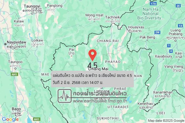 เชียงใหม่-ชลประทานเชียงใหม่ ตรวจสอบอ่างเก็บน้ำทุกพื้นที่ หลังแผ่นดินไหวแรง 4.5 ที่อำเภอพร้าว ยืนยันไม่ได้รับผลกระทบ