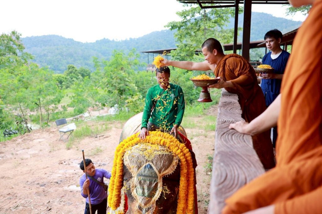 ทั้งนี้ เมื่อวันที่ 2 กรกฎาคม 2568 ได้มีการจัดพิธีรับขวัญอย่างเป็นทางการ โดยพระครูอ๊อดได้ประกอบพิธีพรมน้ำพระพุทธมนต์ และคล้องพวงมาลัยดอกไม้เพื่อความเป็นสิริมงคล พร้อมจัดโต๊ะเลี้ยงผลไม้และอาหารสำหรับช้างเชือกนี้ โดยถือเป็นช้างลำดับที่ 23 ที่ได้รับการรับรองเข้าเป็นสมาชิกของ “ช้างตระกูลแสน” ซึ่งเป็นกลุ่มช้างที่ได้รับการดูแลใช้ชีวิตอย่างเป็นธรรมชาติภายใต้พื้นที่