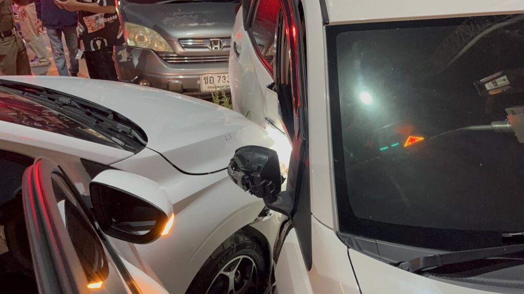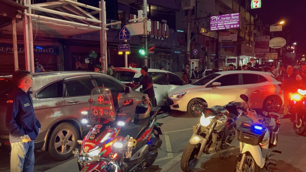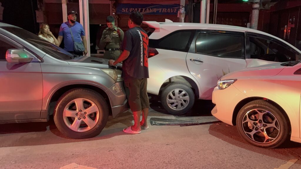เมื่อเวลา 06.00 น. วันที่ 2 สิงหาคม 2568 ศูนย์วิทยุ สภ.เมืองพัทยา รับแจ้งเหตุรถยนต์ เสียหลักพุ่งชนรถที่จอดข้างทางบริเวณถนนพัทยาสาย 3 หน้า รพ.เมืองพัทยา ต.หนองปรือ อ.บางละมุง จ.ชลบุรี จึงประสานกำลังเจ้าหน้าที่เข้าตรวจสอบ