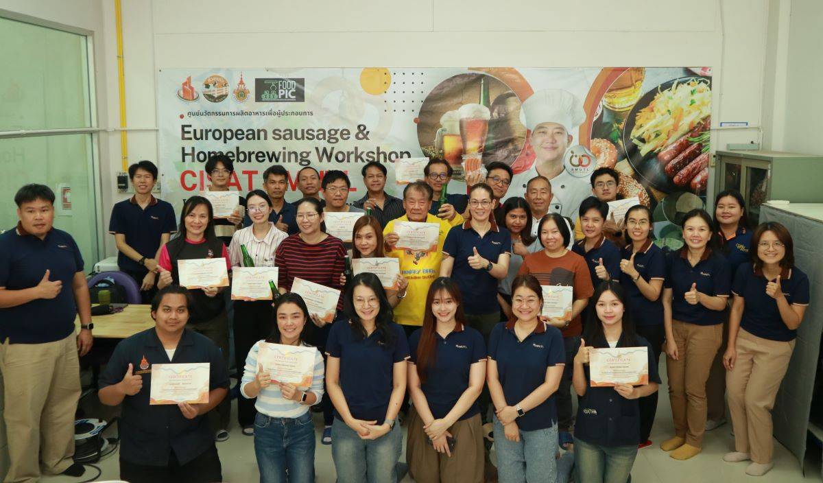 ศูนย์นวัตกรรมผลิตอาหารเพื่อผู้ประกอบการ วิทยาลัยเทคโนโลยีและสหวิทยาการ : FoodPro Inno Center for Enterpreneur (FoodPIC) มหาวิทยาลัยเทคโนโลยีราชมงคลล้านนา ร่วมกับ ศูนย์วิจัยและพัฒนาผลิตภัณฑ์ สำนักงานปศุสัตว์เชียงใหม่ จัดอบรมเชิงปฏิบัติการ “European Sausage and Home Brewing Workshop” ระหว่างวันที่ 28 กุมภาพันธ์ – 2 มีนาคม 2568 ณ อาคารโรงปฏิบัติการโรงงานต้นแบบอุตสาหกรรมอาหาร (Food Shop) มทร.ล้านนา (ดอยสะเก็ด)