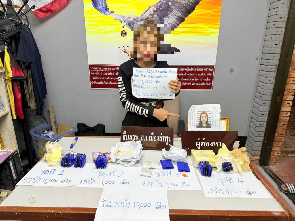ผลการปฏิบัติเกี่ยวกับยาเสพติดในห้วงวันที่ 27 กุมภาพันธ์ 2569 ที่ผ่านมา การปฏิบัติปิดล้อมตรวจค้นเป้าหมายเครือข่ายยาเสพติดโดยการอำนวยการสั่งการของ พล.ต.ต.บุญยวัต เกิดกล่ำ ผบก.ภ.จว.ลำพูน ,พ.ต.อ.พชรพล วงศ์รจิต รอง ผบก.ภ.จว.ลำพูน, พ.ต.อ.สำเร็จ สามสีทอง ผกก.สภ.เมืองลำพูน, พ.ต.ท.สมศักดิ์ วงศ์กิติ รอง ผกก.สส.สภ.เมืองลำพูน กำลังเจ้าหน้าที่ฝ่ายสืบสวน นำโดย พ.ต.ท.วรรณศักดิ์ จริยา สว.สส.สภ.เมืองลำพูน ร.ต.อ.สมศักดิ์ แสงผึ้ง รอง สว.(สส.)สภ.เมืองลำพูน พร้อมกำลังจำนวนหนึ่ง ร่วมกันจับกุม นางสาวเบญ อายุ 35 ปี ชาวบ้าน ต.แม่ก๊า อ.สันป่าตอง จ.เชียงใหม่ ของกลาง ยาบ้า 30 เม็ด โดยจับกุมได้บริเวณบ้านพักเขต บ้าน ม.6 ต.ริมปิง อ.เมือง จ.ลำพูน โดยกล่าวหาว่า “มียาเสพติดให้โทษประเภท 1 (เมทแอมเฟตามีน/ยาบ้า) ไว้ในความครอบครองโดยไม่ได้ผิดกฎหมาย และเสพยาเสพติดให้โทษประเภท1 (ยาบ้า หรือเมทแอมเฟตามีน) โดยผิดกฎหมาย”