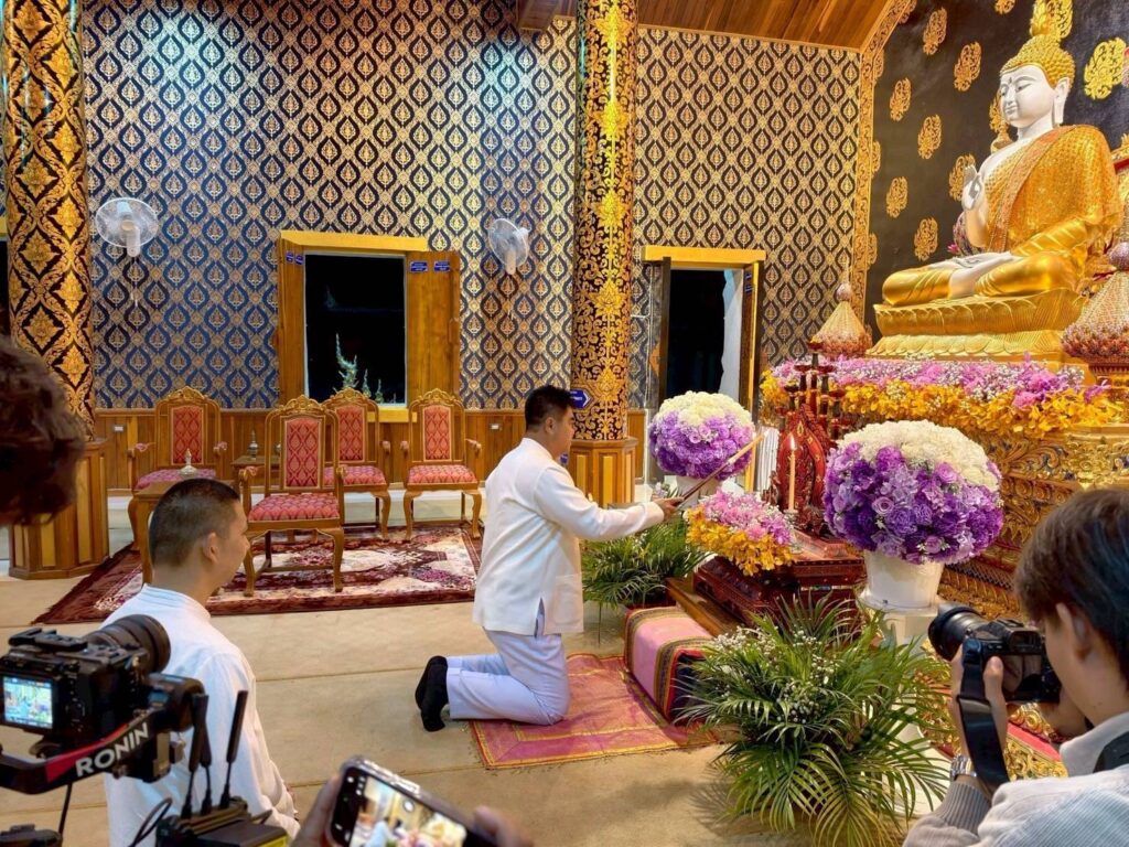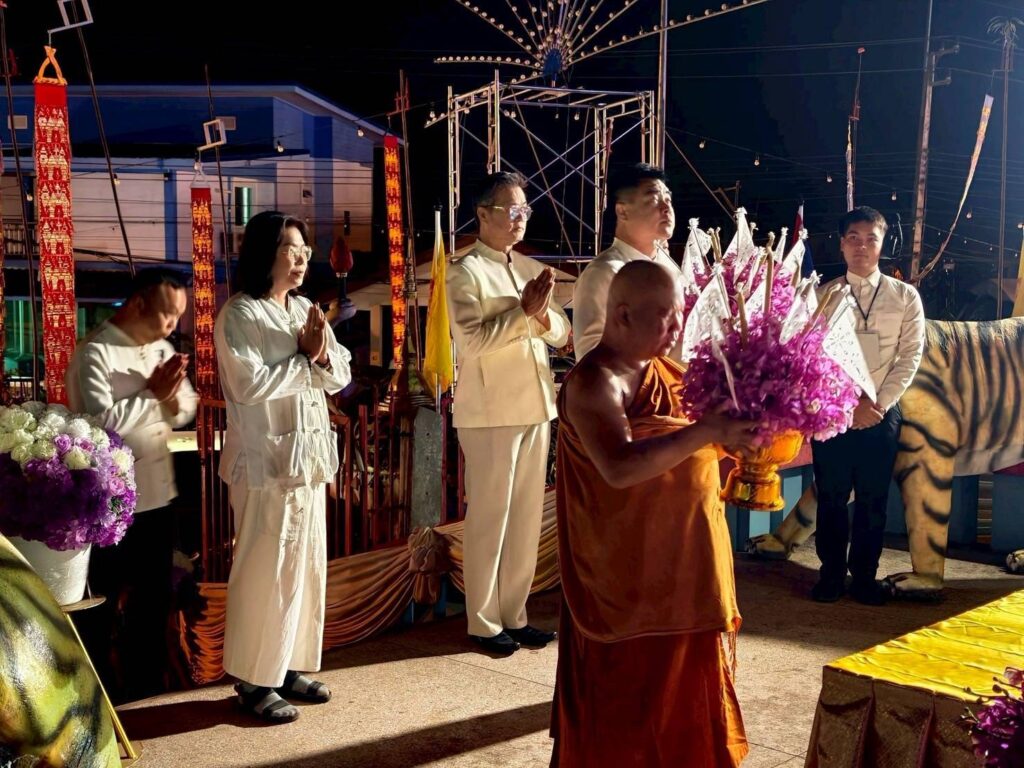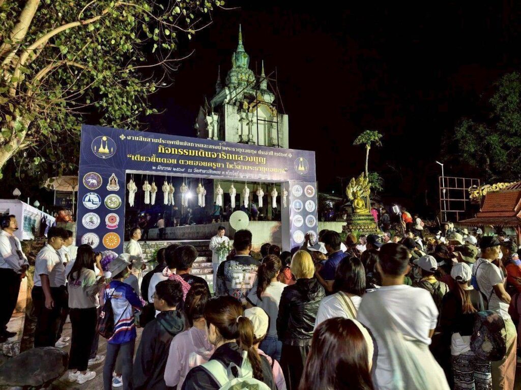 ก่อนออกเดิน ผู้ว่าฯ และผู้ร่วมงานได้ประกอบพิธีทางศาสนา วางพานพุ่มดอกไม้สดสักการะครูบาเจ้าศรีวิชัย เพื่อความเป็นสิริมงคล จากนั้นจึงเริ่มขบวนเดินจาริกระยะทางกว่า 9 กิโลเมตร มุ่งหน้าขึ้นดอยตุงเพื่อไหว้สาพระธาตุ สืบฮีตฮอยประเพณีล้านนาที่สืบต่อกันมาอย่างยาวนาน โดยงานจัดขึ้นระหว่างวันที่ 2–3 มีนาคม 2569