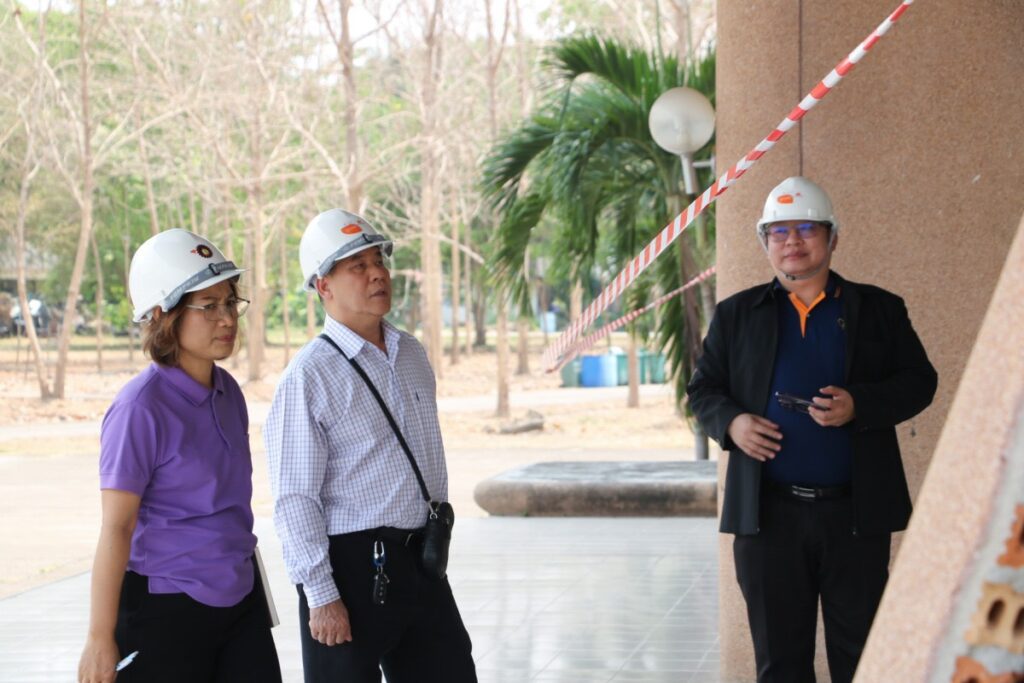 รักษาราชการแทนอธิการบดี กล่าวว่า การลงพื้นที่ในครั้งนี้เป็นการตรวจสอบความเสียหายในพื้นที่จริงภายหลังจากได้รับรายงานจากทีมวิศวกรผู้เชี่ยวชาญ ลงพื้นที่ประเมินความเสียหายเมื่อวันที่ 30 มีนาคม 2568 ที่ผ่านมา โดยจากการลงพื้นที่วันนี้พบว่ามีหลายอาคารที่ได้รับความเสียหายแต่ส่วนใหญ่เป็นส่วนตกแต่งและรอยร้าวจากแรงสั่นสะเทือน ไม่ใช่ส่วนที่เป็นโครงสร้างหลักของอาคาร ซึ่งมหาวิทยาลัยจะเร่งดำเนินการซ่อมแซมและปรับปรุงอาคารโดยเร็ว เพื่อให้การเรียนการสอนสามารถกลับมาดำเนินการได้ตามปกติ จึงขอให้นักศึกษา ผู้ปกครอง และบุคลากรมั่นใจในความปลอดภัย เนื่องจากมหาวิทยาลัยให้ความสำคัญสูงสุดกับสวัสดิภาพของทุกคน