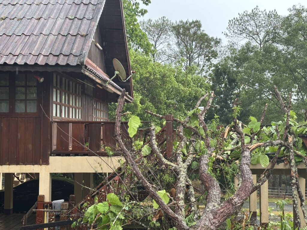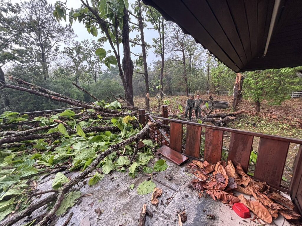 บ้านพักนายอำเภออมก๋อย ต้นไม้ใหญ่ล้มทับบริเวณระเบียงได้รับความเสียหาย