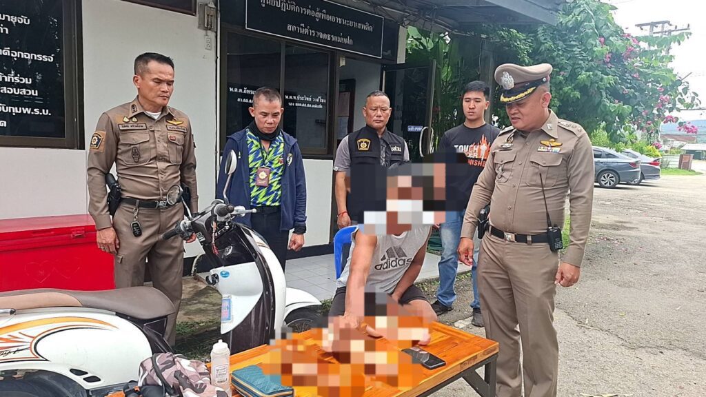 ความคืบหน้าเมื่อเวลา 12.00 น.วันที่ 3 ก.ค.68 พ.ต.อ.เอกพงศ์ ไชยวงค์สาย ผกก.สภ.แม่แฝก พร้อมชุดสืบสวนได้บุกเข้าจับกุมตัวนาย ก. อายุ 49 ปี. ชาวจังหวัดลำปาง พักอยู่บ้านเช่า ในพื้นที่หมู่บ้านแพะเจดีย์ หมู่13 ต.เจดีย์แม่ครัวอ.สันทราย จ.เชียงใหม่ พร้อมของกลางอวัยะเพศชายปลอม ขนาด 15 นิ้ว 12 นิ้ว 9 นิ้ว สามอันและคลีมหล่อลื่น 1 ขวด รถจักยานยนต์ยี่ห้อฮอนด้าสีขาว 1 คัน