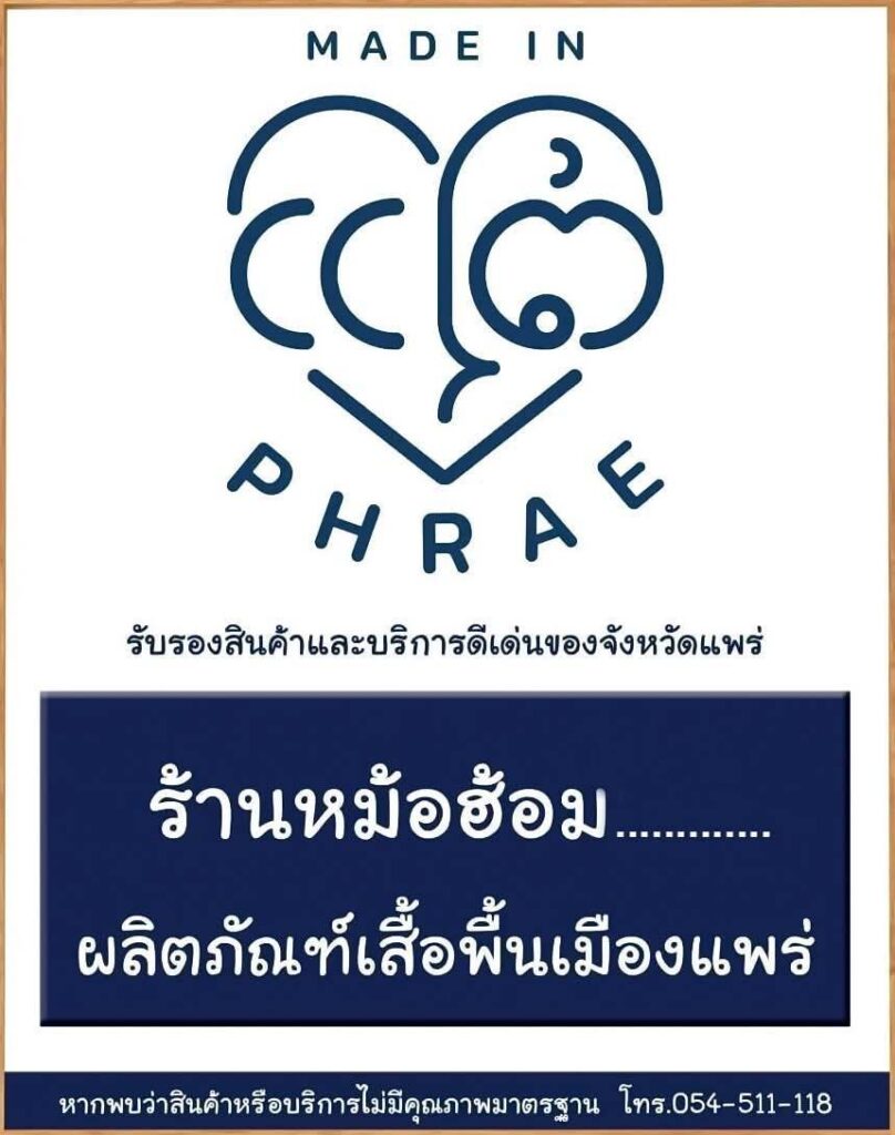 จังหวัดแพร่ เลือกเครื่องหมาย “MADE IN PHRAE” เป็นเครื่องหมายการค้าและตราสัญลักษณ์ เพื่อรับรองคุณภาพของสินค้าฯ