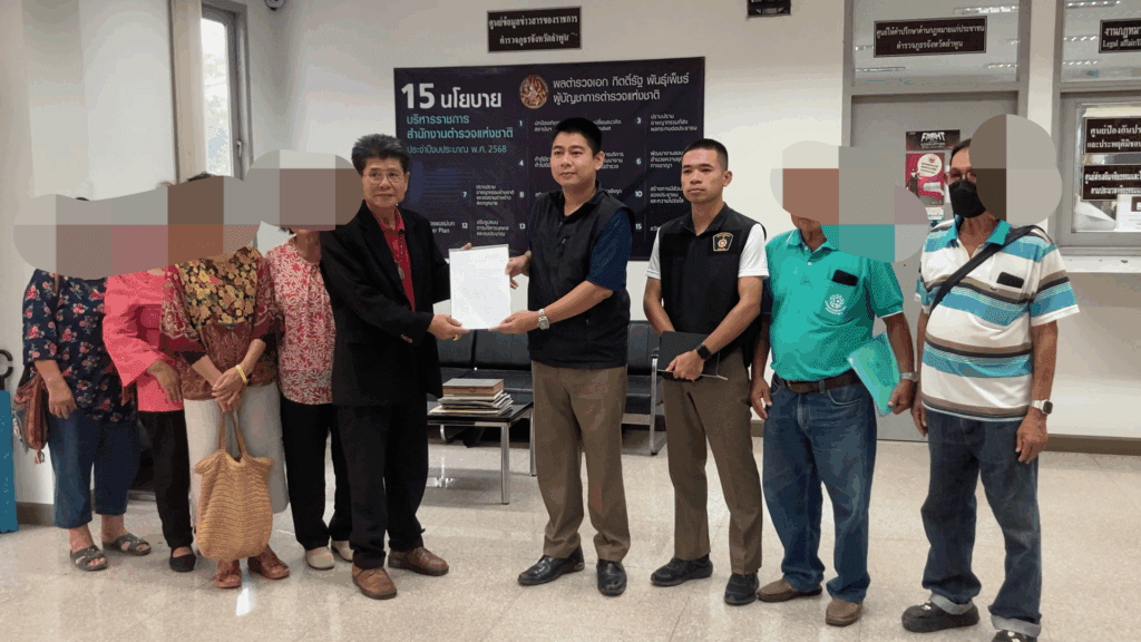 ทนายความนำครูบำนาญลำพูน ที่ถูกหลอกกู้เงินสหกรณ์ ร่วมลงทุนทั้งซื้อหุ่นยนต์เฝ้าบ้าน ซื้อมันสำปะหลัง ลงทุนอสังหาฯ แลกปันผลสูง-ปลดหนี้สหกรณ์ฯ ได้ สุดท้ายกลายเป็นโครงการทิพย์ สูญเงินรวมร่วม 100 ล้าน แจ้งความเกือบ 3 ปีแต่คดีไม่คืบรวมตัวยื่นหนังสือร้องผู้บังคบการตำรวจภูธร จังหวัดลำพูน หวั่นคดีหมดอายุความ