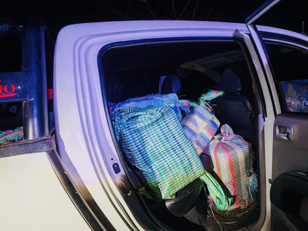 เจ้าหน้าที่จึงจัดกำลังควบคุมพื้นที่และตรวจสอบที่กระบะหลังรถและเบาะนั่งภายในรถพบบรรทุกกระสอบฟางสีรุ้งมาด้วยรวมจำนวน 14 ใบ ภายในบรรจุยาเสพติดให้โทษประเภท 1 (ยาบ้า) กระสอบละ 200,000 เม็ด รวมยาบ้าทั้งหมดประมาณ 2,800,000 เม็ด จึงได้ยึดไว้เป็นของกลางและนำกำลังออกติดตามหาตัวคนหลบหนีต่อไป.