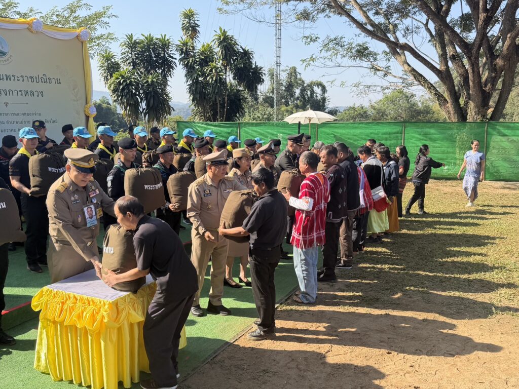 เชียงใหม่-สภ.แม่อาย จ.เชียงใหม่ร่วมต้อนรับ องคมนตรี ประธานกรรมการบริหารมูลนิธิโครงการหลวง เดินทางมา มอบถุงพระราชทาน “โครงการสืบสานพระราชปณิธานงานโครงการหลวง” ณ ศูนย์พัฒนาโครงการหลวงหมอกจ๋าม ต.ท่าตอน อ.แม่อาย จ.เชียงใหม่