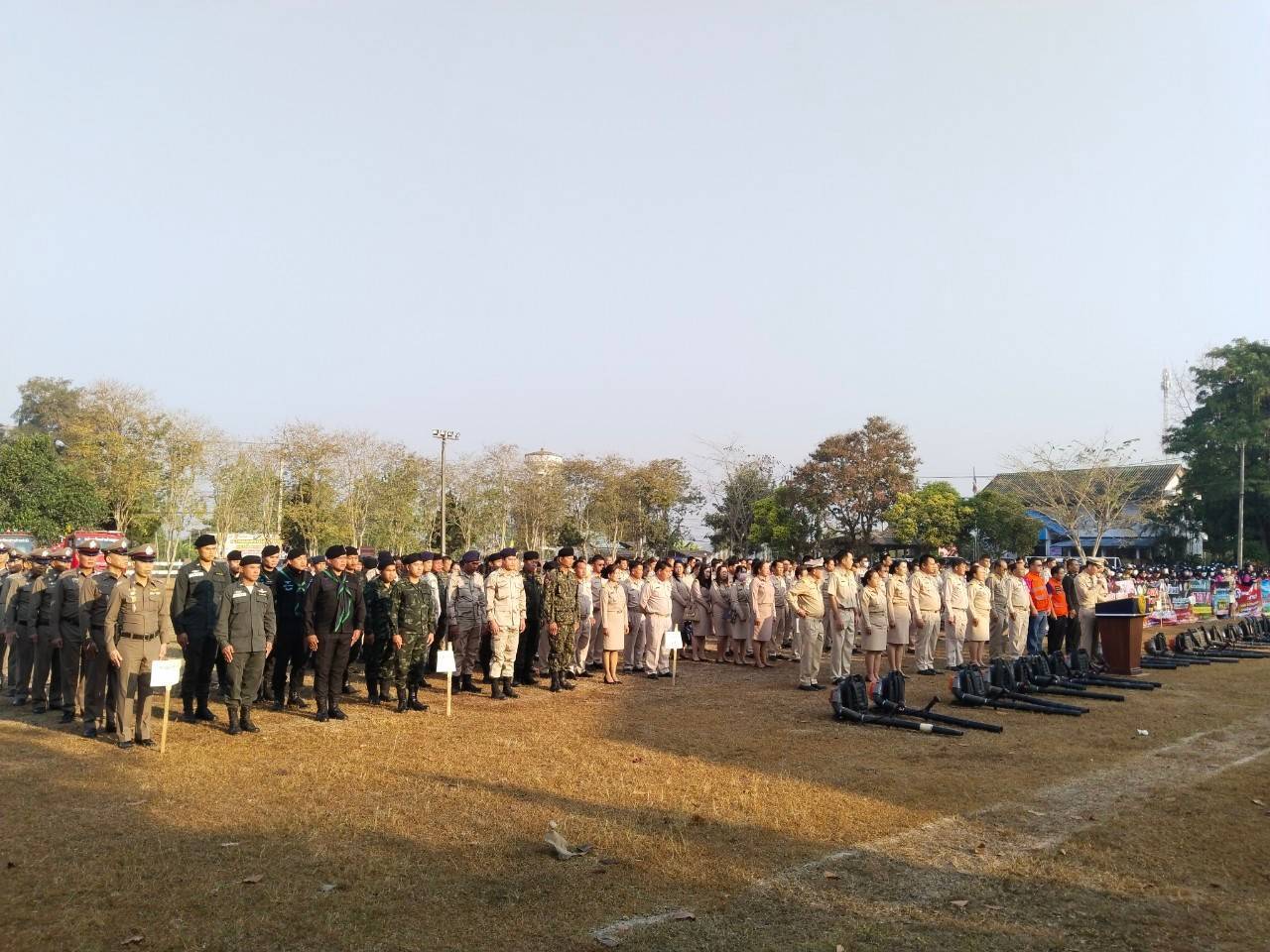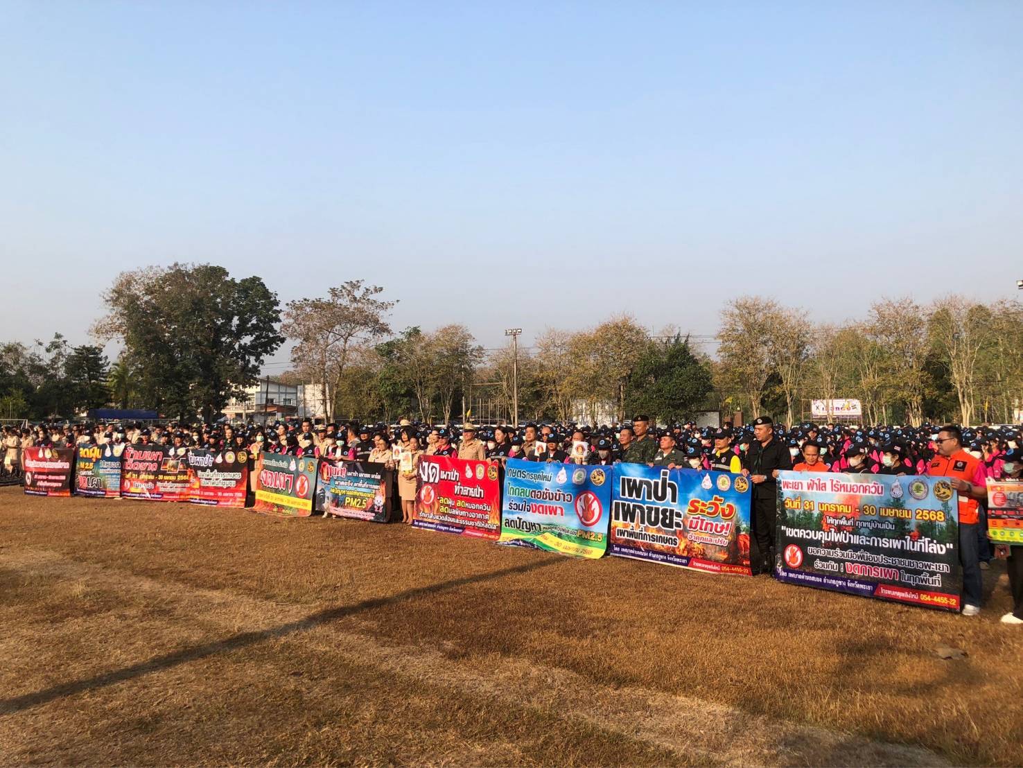 เมื่อวันที่ 4 ก.พ. 68 เวลา 08.00 น. กกล.ผาเมือง/กอ.รมน.ภาค 3 สย.2 โดย ชป.กร.315 ร่วมกับ ชพส.3216, หัวหน้าส่วนราชการ, หัวหน้าส่วนรัฐวิสาหกิจ ,ผู้นำหมู่บ้าน/ชุมชน,อสม.อ.ภูซาง ร่วมการรณรงค์ประชาสัมพันธ์ (Kick off) การป้องกันและแก้ไขปัญหาไฟป่า หมอกควัน และฝุ่นละอองขนาดเล็ก (PM 2.5) เพื่อให้การขับเคลื่อนการดำเนินการแก้ไขปัญหาไฟป่า หมอกควัน และผุ่นละอองขนาดเล็ก (PM 2.5) ให้เป็นไปอย่างมีประสิทธิภาพและเป็นรูปธรรม “หยุดเผา หยุดฝุ่น เพื่อคุณ เพื่อเรา” เพื่อให้เกิดการรับรู้ถึงความสำคัญของการห้ามเผาในทุกครัวเรือน ณ ที่ว่าการอำเภอภูซาง จว.พ.ย. โดยมี นายสมชาย วงศ์จริยะเกษม นายอำเภอภูซาง เป็นประธาน ผู้เข้าร่วมกิจกรรมจำนวน 1,200 คน