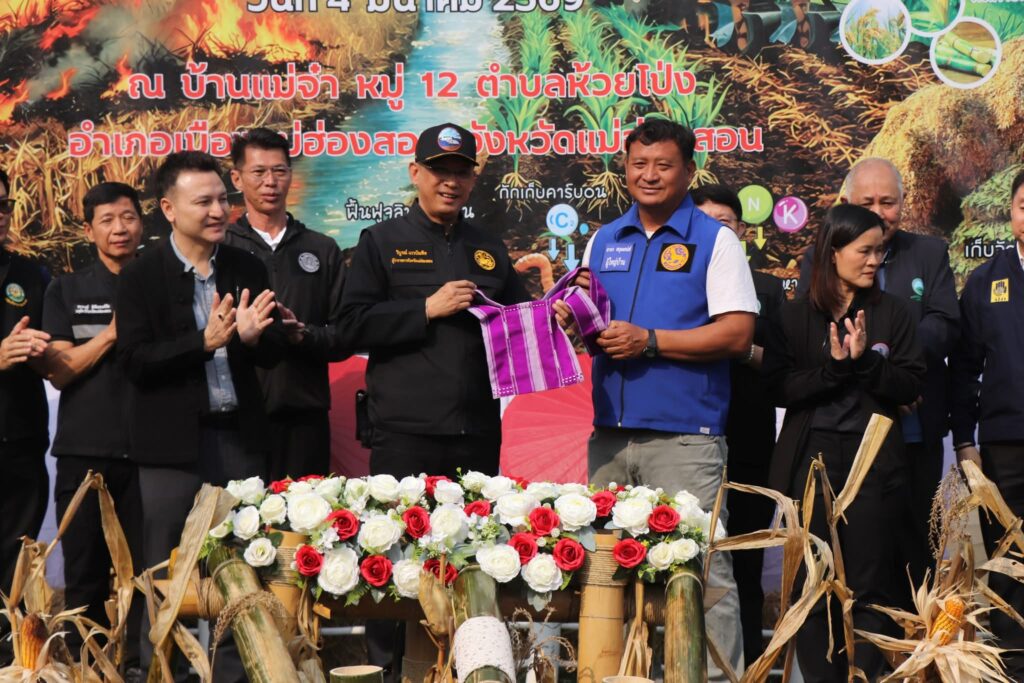 วันที่ 4 มีนาคม 2569 เวลา 09.00 น. ที่ บ้านแม่จ๋า หมู่ที่ 12 ตำบลห้วยโป่ง อำเภอเมืองแม่ฮ่องสอน จังหวัดแม่ฮ่องสอน นายวิบูรณ์ แววบัณฑิต ผู้ว่าราชการจังหวัดแม่ฮ่องสอน เป็นประธานเปิดงาน “รณรงค์ผลิตปุ๋ยหมัก ลดการเผา บรรเทาหมอกควัน” ภายใต้กิจกรรม ส่งเสริมการไถกลบและผลิตปุยอินทรีย์เพื่อลดการปล่อยก๊าซเรือนกระจก ประจำปีงบประมาณ 2569 โดยมี หัวหน้าส่วนราชการระดับจังหวัดและระดับอำเภอ นายกองค์การบริหารส่วนตำบลห้วยโป่ง ผู้นำหมู่บ้าน และชาวบ้านหมู่บ้านจ๋าและพื้นที่ใกล้เคียงร่วมกิจกรรม
