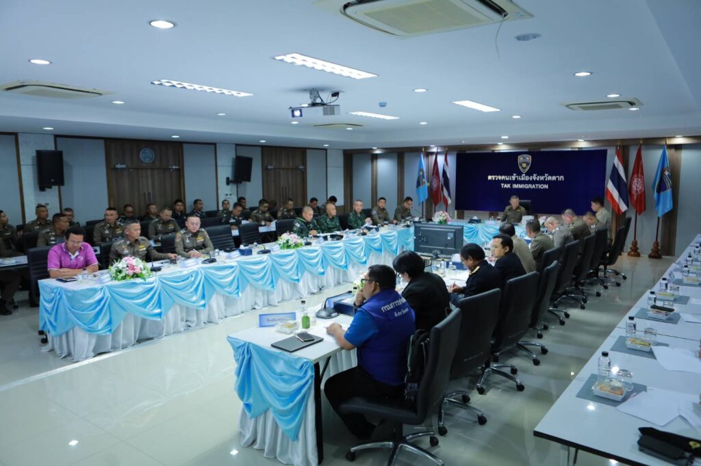 ที่ประชุมได้รายงานและหารือสถานการณ์ภาพรวมในพื้นที่ อ.แม่สอด จ.ตาก และสถานการณ์แก๊งคอลเซ็นเตอร์ในประเทศเมียนมา หลังจากทางการไทยใช้มาตรการตัดไฟ-อินเทอร์เน็ต-น้ำมัน ส่งผลกระทบต่อการทำงานของกลุ่มแก๊งดังกล่าว ประกอบกับการที่ประเทศไทยเสียสละทั้งกำลังพล ทรัพยากร เศรษฐกิจ ช่วยเหลือนานาประเทศ ทำให้มีการกวาดล้างแก๊งคอลเซ็นเตอร์ในเมืองเมียวดี ประเทศเมียนมา มีการจับกุมคนต่างชาติจำนวน 32 สัญชาติ รวมจำนวน 8,698 ราย ในจำนวนนี้ได้ดำเนินการส่งกลับประเทศต้นทางแล้ว 13 สัญชาติ จำนวน 7,011 ราย คงค้างรอส่งกลับ 1,687 ราย ทั้งนี้ จากการตรวจสอบพบว่ายังมีการปฏิบัติการของแก๊งคอลเซ็นเตอร์อีก 2 แห่ง ซึ่งไม่ได้รับผลกระทบจากมาตรการตัดไฟ-อินเทอร์เน็ต-น้ำมัน ของทางการไทย จากการสืบสวนทราบว่ามีคนที่เกี่ยวข้องทำงานในแก๊งกล่าวรวมเกือบ 3,000 คน ซึ่งเจ้าหน้าที่จะได้ขยายผลตรวจสอบว่ามีคนไทยไปมีส่วนเกี่ยวข้องกับขบวนการหรือไม่
