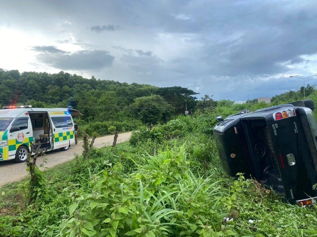 แพร่-ปิคอัพ “เสียการทรงตัว” ลื่นลงข้างทาง บ้านแม่พวก ต.ห้วยไร่ ส่งผลคนขับบาดเจ็บ สมาคมกู้ภัยเด่นชัยร่วมบุญ นำส่ง รพร.เด่นชัย