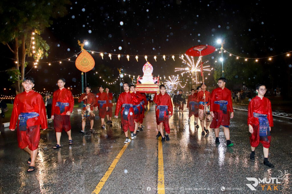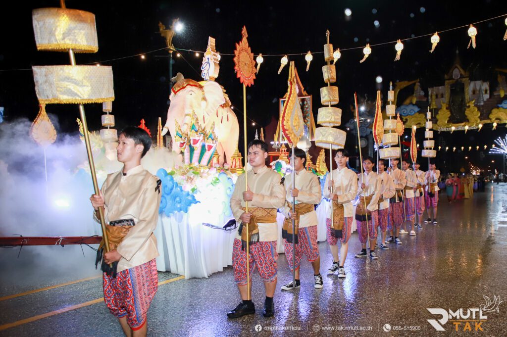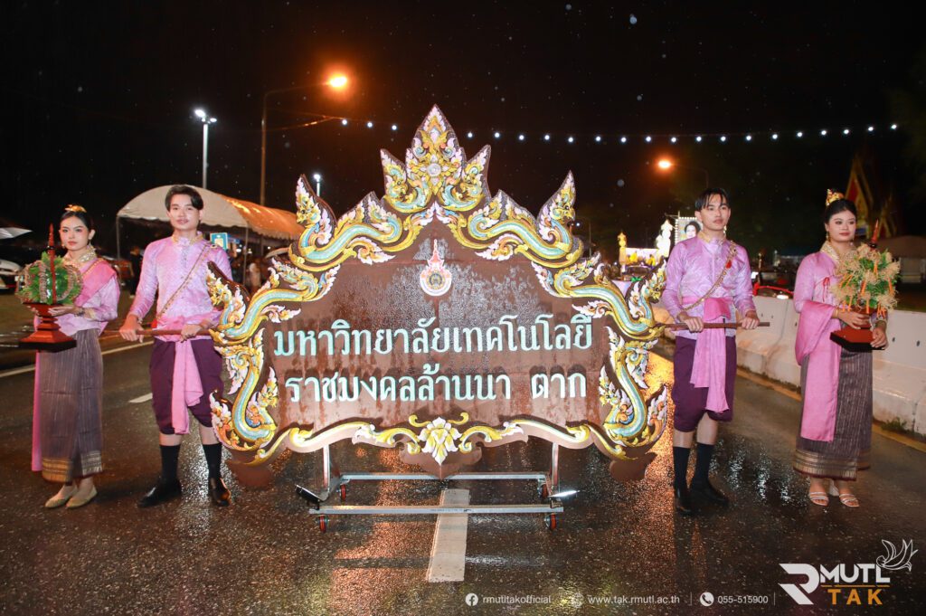เมื่อวันที่ 2 พฤศจิกายน 2568 ผศ.ดร.ทนงศักดิ์ ยาทะเล ผู้อำนวยการสำนักงานบริหาร พร้อมด้วยผู้บริหาร บุคลากร และนักศึกษา มหาวิทยาลัยเทคโนโลยีราชมงคลล้านนา ตาก ร่วมกับชุมชนศรีดอนแก้ว-ตากสิน ร่วมขบวนแห่ในพิธีเปิดงานประเพณีลอยกระทงสายไหลประทีป 1000 ดวง จังหวัดตาก ประจำปี 2568 โดยมีนายสวนิต สุริยกุล ณ อยุธยา รองผู้ว่าราชการจังหวัดตาก รักษาราชการแทนผู้ว่าราชการจังหวัดตาก เป็นประธานในพิธีเปิดงาน ณ บริเวณริมน้ำปิง อำเภอเมือง จังหวัดตาก