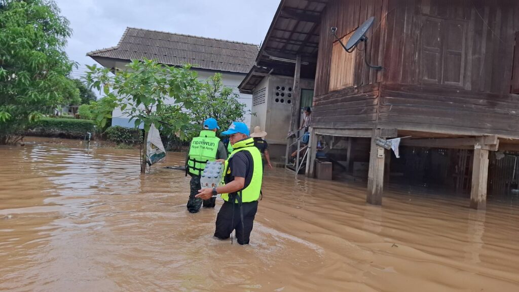 ฝ่ายทหาร และผู้นำชุมชน ลงพื้นที่ช่วยเหลือผู้ประสบเหตุน้ำท่วมเฉียบพลัน โดยมีบ้านเรือนประชาชนได้รับผลกระทบ จำนวน 84 หลังคาเรือน ในการนี้ เพื่อเป็นการส่งมอบความห่วงใย และบรรเทาทุกข์ในขั้นต้น โดย ศูนย์บรรเทาสาธารณภัยมณฑลทหารบกที่ 33 จึงได้มอบน้ำดื่ม แก่ผู้ประสบภัย และเตรียมการประสานเข้าพื้นที่เพื่อทำความสะอาดถนนสัญจร เมื่อน้ำได้ลดระดับลงในห้วงต่อไป ณ บ้านสบอ่าว ตำบลสันติสุข อำเภอดอยหล่อ จังหวัดเชียงใหม่