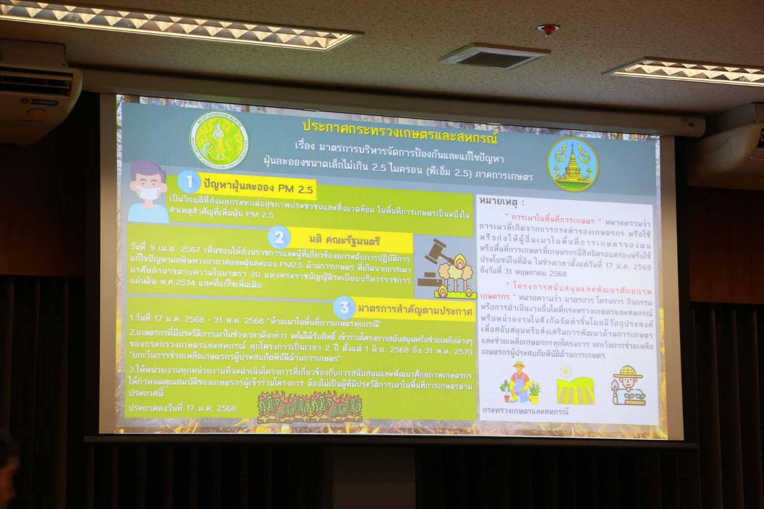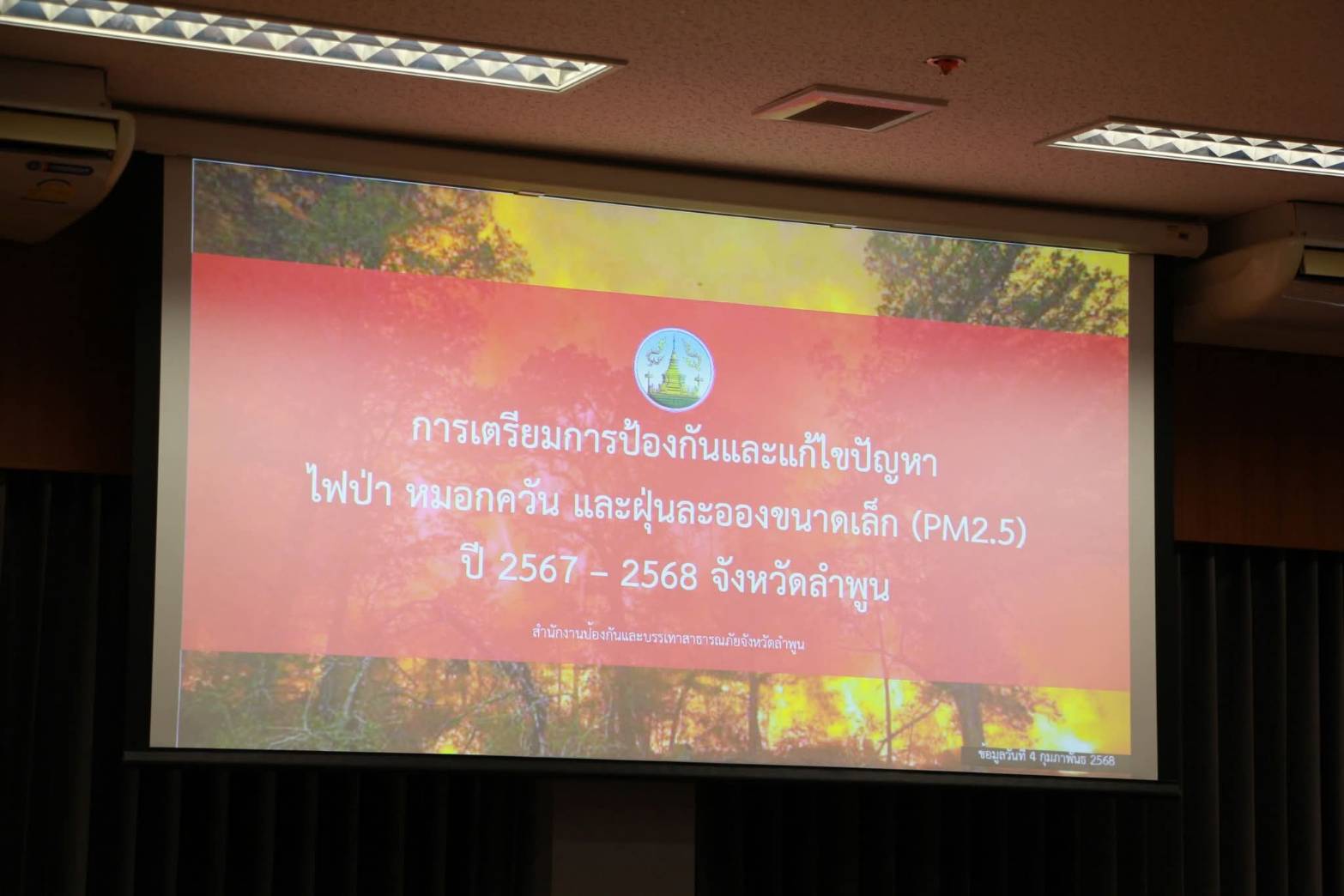 นายวิวัฒน์ อินทร์ไทยวงศ์ ผู้ว่าราชการจังหวัดลำพูน มอบหมายให้นายปรีชา สมชัย ปลัดจังหวัด(ปจ.)ลำพูน ต้อนรับและนำหน่วยงานที่เกี่ยวข้อง ร่วมนำเสนอประเด็นแนวทางป้องกันไฟป่าหมอกควัน PM 2.5 ชื่อเต็มคือ Particulate Matter with diameter of less than 2.5 micron(เป็นฝุ่นละออง ที่มีขนาดไม่เกิน 2.5 ไมครอน) ในพื้นที่จังหวัดลำพูน แก่พลตรี ชายแดน กฤษณสุวรรณ รองแม่ทัพภาคที่ 3 ในฐานะ รองผู้อำนวยการศูนย์อำนวยการป้องกันและแก้ไขปัญหาไฟป่าหมอกควันและฝุ่นละออง ภาค 3 ส่วนหน้า(รองผอ.ศอ.ปกป.ภาค 3 สน.) พร้อมคณะ ในการลงพื้นที่จังหวัดลำพูน วันนี้( 5 ก.พ. 68 ) เวลา 13 นาฬิกา 30 นาที ณ ห้องประชุมหริกุญชัย ชั้น 4 ศาลากลางจังหวัดลำพูน
