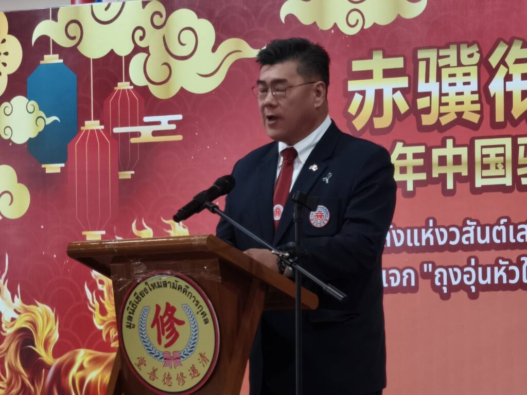กงสุลใหญ่แห่งสาธารณรัฐประชาชนจีน ประจำเชียงใหม่กล่าวต่อว่าจีนและไทยเป็นญาติที่ดี มิตรสหายที่ดี และหุ้นส่วนที่ดี ที่ต่างสนับสนุนซึ่งกันและกันและมีชะตากรรมร่วมกัน เมื่อไม่นานมานี้ ประธานาธิบดีสี จิ้นผิง และพระบาทสมเด็จพระเจ้าอยู่หัว ได้บรรลุความเห็นพ้องกันในการส่งเสริมความสัมพันธ์ฉันมิตรระหว่างจีนและไทย ซึ่งชี้ให้เห็นถึงแนวทางในการสร้างประชาคมจีน-ไทยที่มีอนาคตร่วมกัน การประชุมเต็มคณะครั้งที่ 4 ของคณะกรรมการกลางพรรคคอมมิวนิสต์จีน ชุดที่ 20 ได้เสนอแผนพัฒนาเศรษฐกิจและสังคมแห่งชาติฉบับที่ 15 ซึ่งเปิดโอกาสใหม่ให้จีนกระชับความร่วมมือกับทุกประเทศ รวมถึงไทยในหลากหลายมิติ ปัจจุบัน จีนได้เริ่มต้นการเดินทางครั้งใหม่เพื่อพัฒนาประเทศให้ทันสมัยแบบจีน และการสร้างประชาคมจีน-ไทยที่มีอนาคตร่วมกันก็ได้เข้าสู่ขั้นตอนใหม่ของการพัฒนาเช่นกัน เราหวังว่าพี่น้องชาวจีนทุกคนในประเทศไทยจะคว้าโอกาสในการพัฒนา ใช้ประโยชน์จากจุดแข็งของตนเอง มีส่วนร่วมอย่างแข็งขันในความร่วมมือที่เป็นรูปธรรมและมิตรภาพระหว่างประชาชนจีนและไทย และร่วมกันสร้างประชาคมจีน-ไทยที่มีอนาคตร่วมกันและภารกิจอันยิ่งใหญ่ในการฟื้นฟูความเจริญรุ่งเรืองประชาชาติ