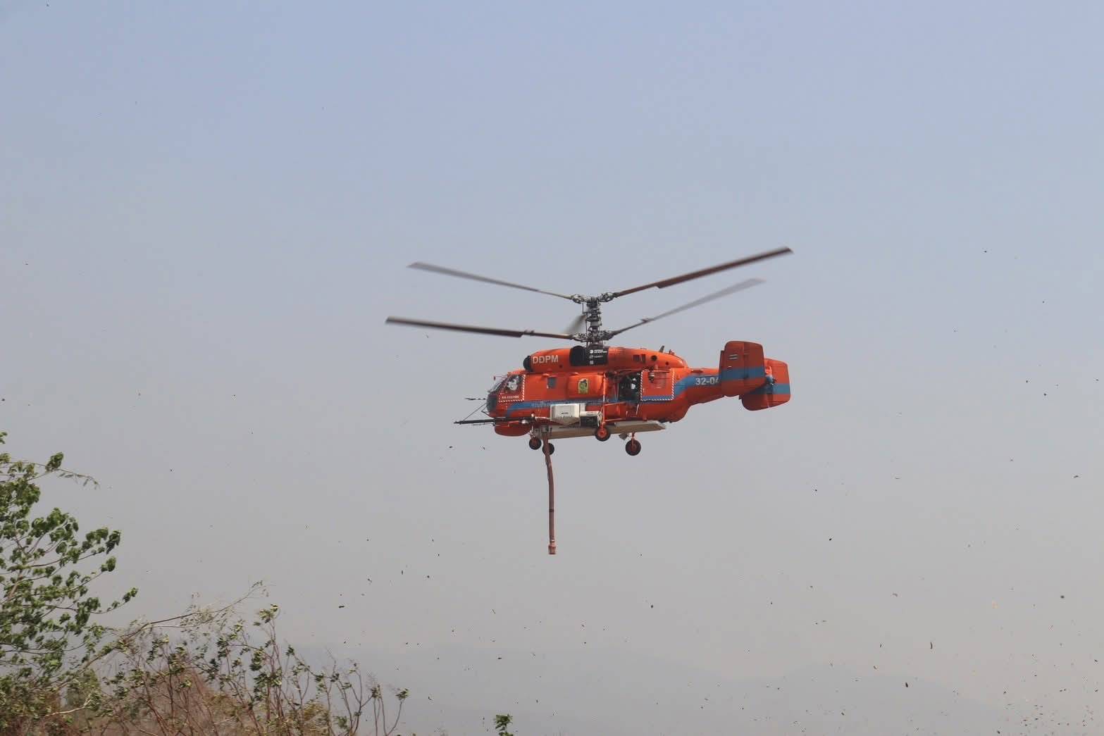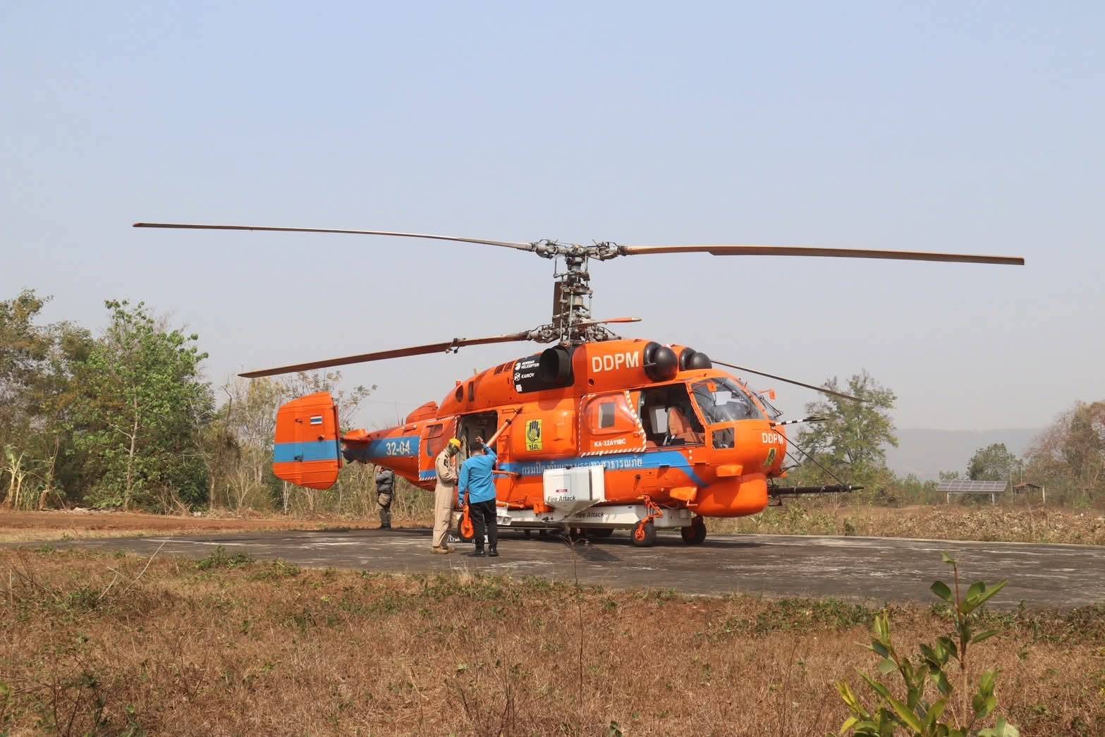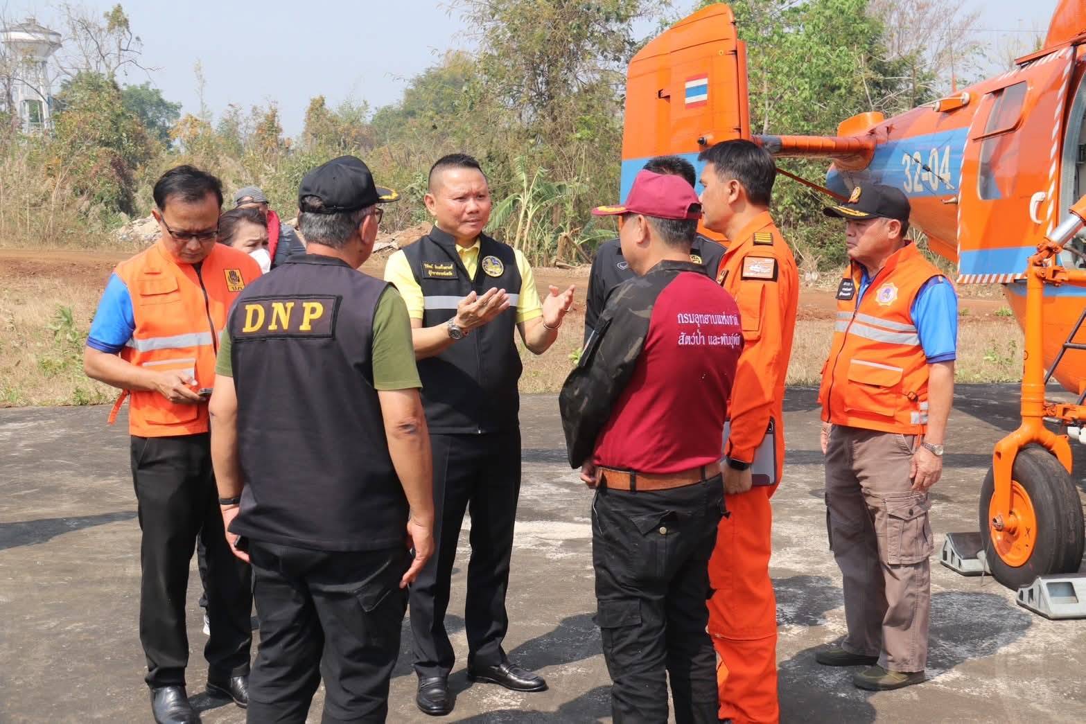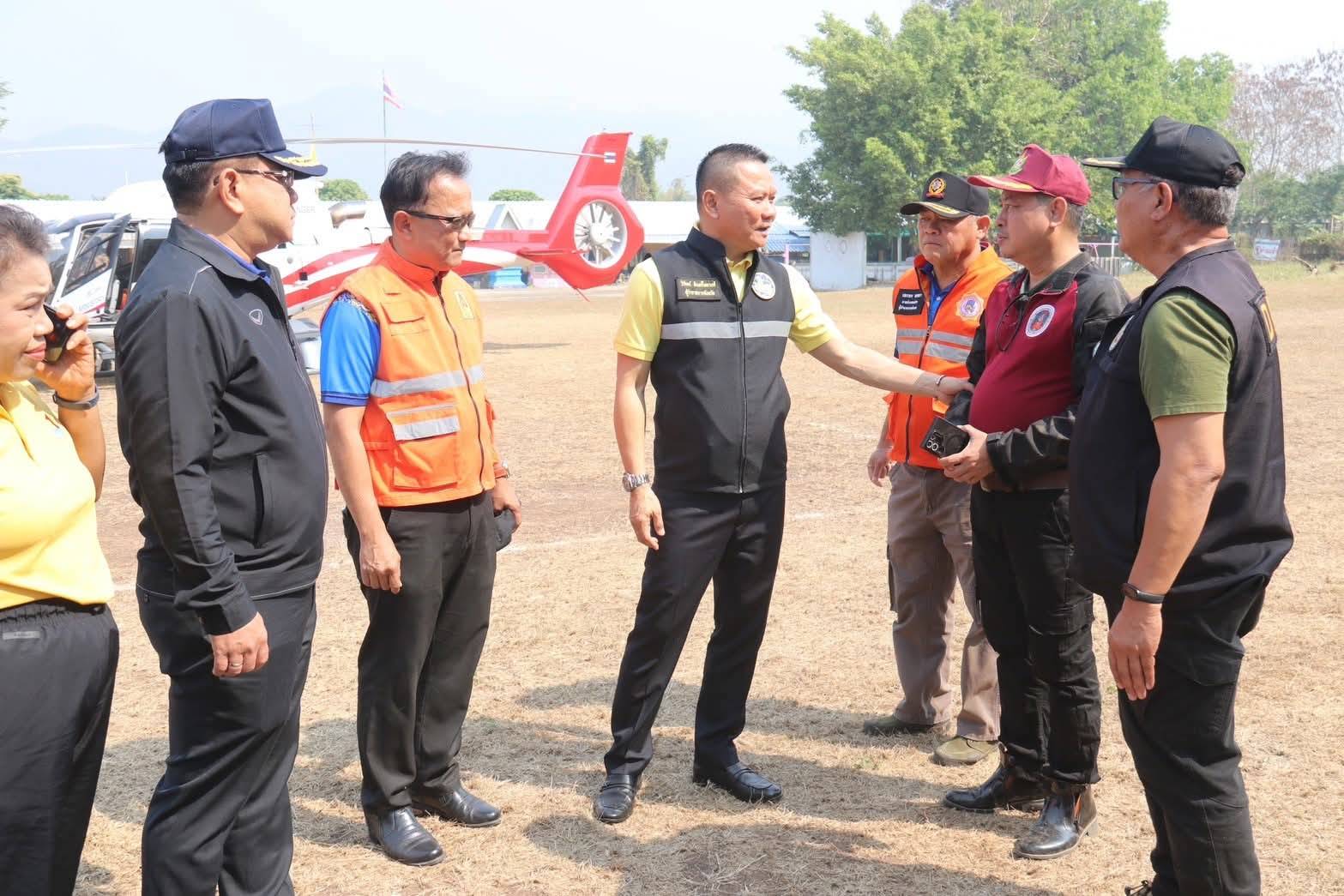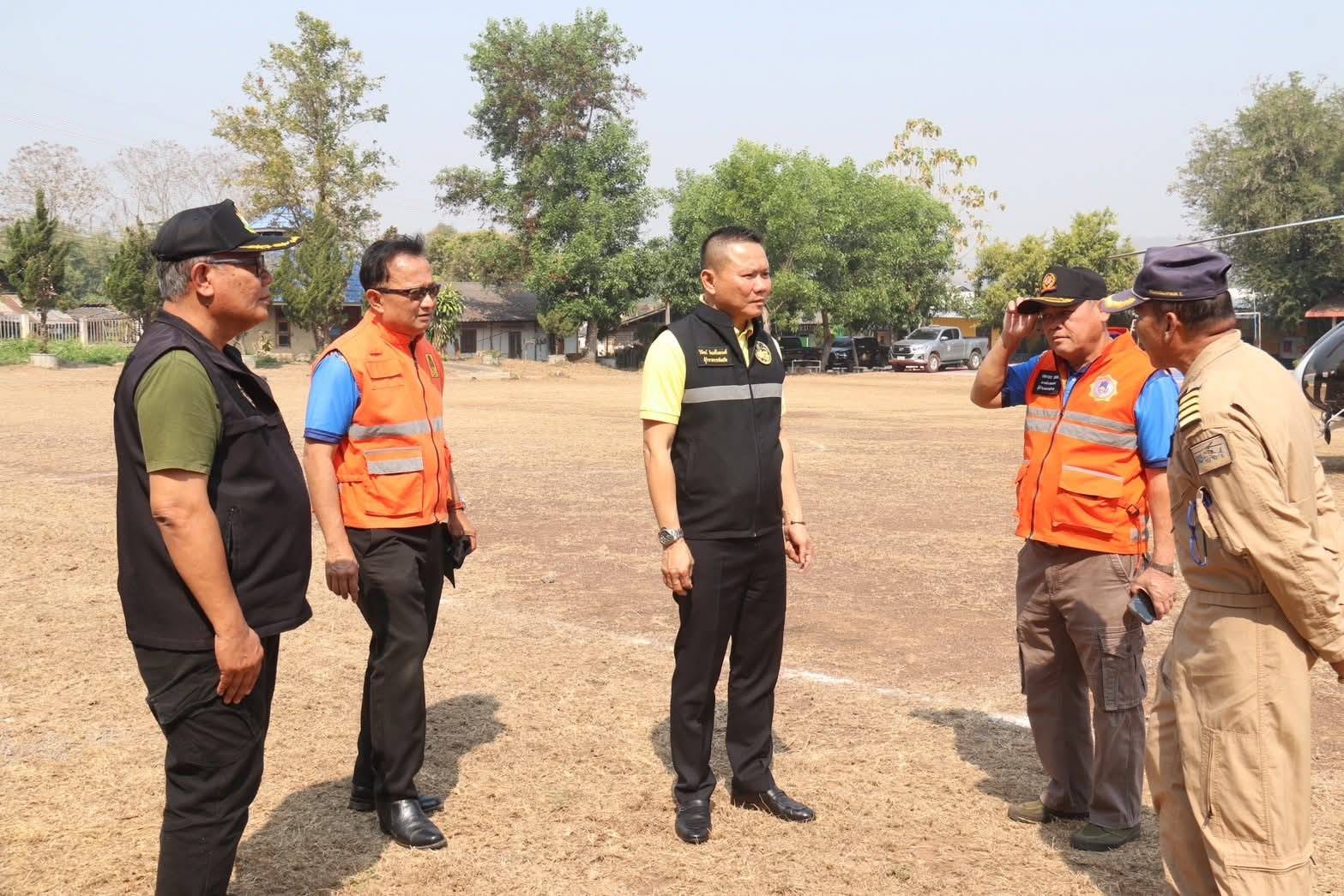 ในการนี้ ผู้ว่าราชการจังหวัดลำพูน, รองผู้ว่าราชการจังหวัดลำพูน, หัวหน้าสำนักงานป้องกันและบรรเทาสาธารณภัยจังหวัดลำพูน ได้ขึ้นเฮลิคอปเตอร์(ฮ.) เพื่อบินสำรวจพื้นที่เผาไหม้ ส่วนใหญ่พบว่า เป็นไฟไหม้ลุกลามเป็นวงกว้างบนภูเขาสูงชัน กำลังภาคพื้นดินที่เข้าปฏิบัติหน้าที่ดับไฟป่าบริเวณขอบด้านล่าง ยังไม่สามารถเข้าดับไฟบริเวณหัวไฟได้ เนื่องจากมีอันตรายในการเข้าปฏิบัติงานสูง และหัวไฟอยู่บนภูเขาสูงชัน