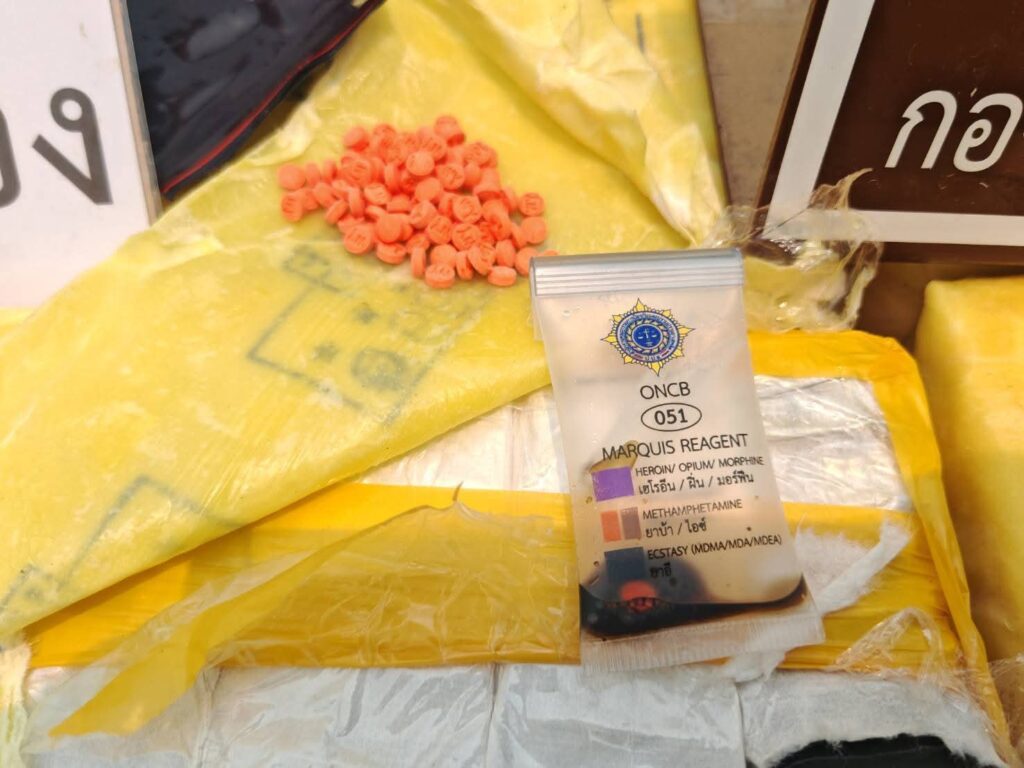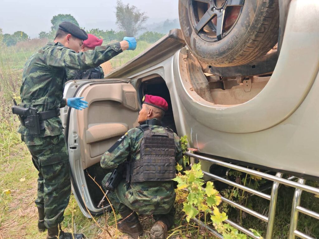 เมื่อวันที่ 4 เม.ย. 69 เวลา 07.00 น.ร้อย ตชด.327 ร่วมกับ บก.ผาแด่น ฉก.ทัพเจ้าตาก, ชป.ลว.ไกล กกล.ผาเมือง, ชป.สท.8 กกล.ผาเมือง, ชป.พิเศษ ฝ่ายปกครอง อ.แม่ฟ้าหลวง และ สภ.แม่ฟ้าหลวงได้รับข่าวสารจากแหล่งข่าวว่ามีกลุ่มขบวนการลักลอบขนยาเสพติดในพื้นที่ อ.แม่ฟ้าหลวง จว.ช.ร. จึงได้จัดกำลังพล จำนวน 1 ชป. ทำการตั้งจุดตรวจ/จุดสกัด เพื่อป้องกันและสกัดกั้นการกระทำผิดกฎหมาย เพื่อป้องกันและสกัดกั้นการกระทำผิด ตาม พ.ร.บ. ประมวลกฎหมายยาเสพติด พ.ศ. 2564 บริเวณ บ.เล่าสิบ ต.แม่สลองนอก อ.แม่ฟ้าหลวง จว.ช.ร. ต่อมาเมื่อเวลา 07.30 น. ตรวจพบรถยนต์ต้องสงสัย จำนวน 1 คัน ยี่ห้อ โตโยต้า รุ่น ไฮลักซ์ วีโก้ สีบรอนซ์ – เงิน ทะเบียน เชียงราย ตามที่ได้รับแจ้งจากแหล่งข่าว จึงได้แสดงตัวเพื่อขอทำการตรวจค้น แต่รถยนต์ต้องสงสัยคันดังกล่าวได้ทำการหลบหนี เจ้าหน้าที่จึงได้ทำการติดตามจนถึงบริเวณ บ.เล่าสิบต.แม่สลองนอก อ.แม่ฟ้าหลวง จว.ช.ร. แต่รถยนต์ต้องสงสัยคันดังกล่าวได้เสียหลักลงบริเวณข้างทาง ผู้ต้องสงสัยได้อาศัยความชำนาญในพื้นที่หลบหนีไปได้ จนท.จึงจัดกำลังพลเพิ่มเติม จำนวน 1 ชป. เพื่อควบคุมพื้นที่ และได้ตรวจสอบรถต้องสงสัยคันดังกล่าว จากการตรวจสอบภายในรถยนต์ตรวจพบกระสอบดัดแปลงจำนวน 22 กระสอบ ภายในบรรจุ ยาเสพติดให้โทษประเภท 1 (ยาบ้า) จำนวนประมาณ กระสอบละ 200,000 เม็ด จำนวน 21 กระสอบ กระสอบละ 100,000 เม็ด จำนวน 1 กระสอบ รวมทั้งสิ้นประมาณ 4,300,000 เม็ด