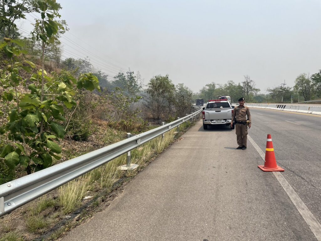 เมื่อวันที่ 5 เม.ย.2569 เวลา 12.30 น.โดยการอำนวยการของ พ.ต.อ.จรูญ ถิ่นอ่วนผกก.สภ.สบปราบ จ.ลำปาง ,พ.ต.ท. กำจร ใจจันทร์ รอง ผกก.ป.สภ.สบปราบ จ.ลำปาง,พ.ต.ท.ชัชพิมุข สูตรเลขสวป.สภ.สบปราบ ได้สั่งการให้ ร.ต.ท.พิเชษ ปูคำรอง สว.(ป.)สภ.สบปราบ ปฏิบัติหน้าที่ร้อยเวร 20 พร้อมสายตรวจรถยนต์ 201 ออกปฏิบัติหน้าที่รับแจ้งจากศูนย์วิทยุ สภ.สบปราบ จ.ลำปางว่ามีเหตุไฟไหม้หญ้าข้างทางบริเวณกม.ที่ 645 – 646 จึงได้ไปตรวจสอบตามที่รับแจ้ง พบไฟไหม้หญ้าข้างทางขาขึ้นในเขตบ้านใหม่วัฒนา หมู่ที่ 10 ต.สบปราบฯ จึงได้แจ้งรถดับเพลิงของ อบต.สบปราบฯและร่วมกับชาวบ้านทำการฉีดน้ำเพื่อทำการดับไฟ ขณะนี้ไฟได้ดับเรียบร้อยแล้วและชาวบ้านร่วมกันเฝ้าระวังไฟป่าอาจจะเกิดขึ้นภายในเขตหมู่บ้านรับผิดชอบ เจ้าหน้าที่ตำรวจจึงได้อำนวยความสะดวกด้านการจราจรให้รถดับเพลิงและชาวบ้านที่ช่วยกันดับไฟเพื่อป้องกันอุบัติเหตุด้วยความเรียบร้อย