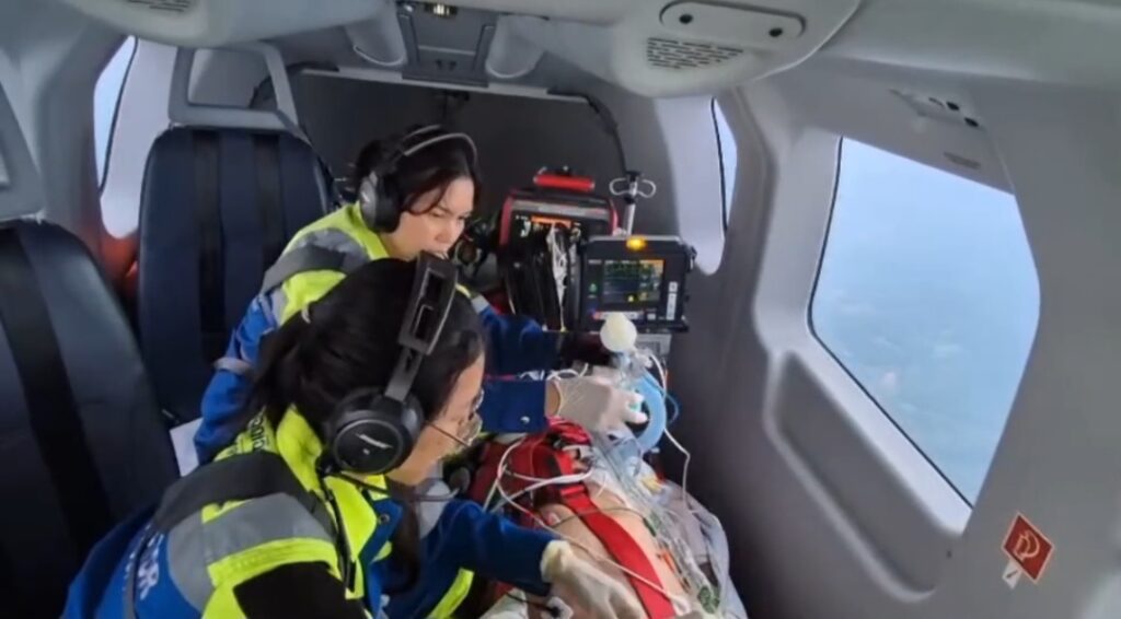 ได้รับบาดเจ็บที่ศีรษะระดับรุนแรง จาก โรงพยาบาลฝาง อำเภอฝาง จังหวัดเชียงใหม่ เพื่อเข้ารับการรักษาพยาบาลต่อที่ โรงพยาบาลนครพิงค์ อำเภอแม่ริม จังหวัดเชียงใหม่ ใช้เวลาบิน ประมาณ 40 นาที (ถ้าลำเลียงทางรถยนต์จะใช้เวลาประมาณ 4 ชม.) ผู้ป่วยถึงมือแพทย์อย่างปลอดภัย