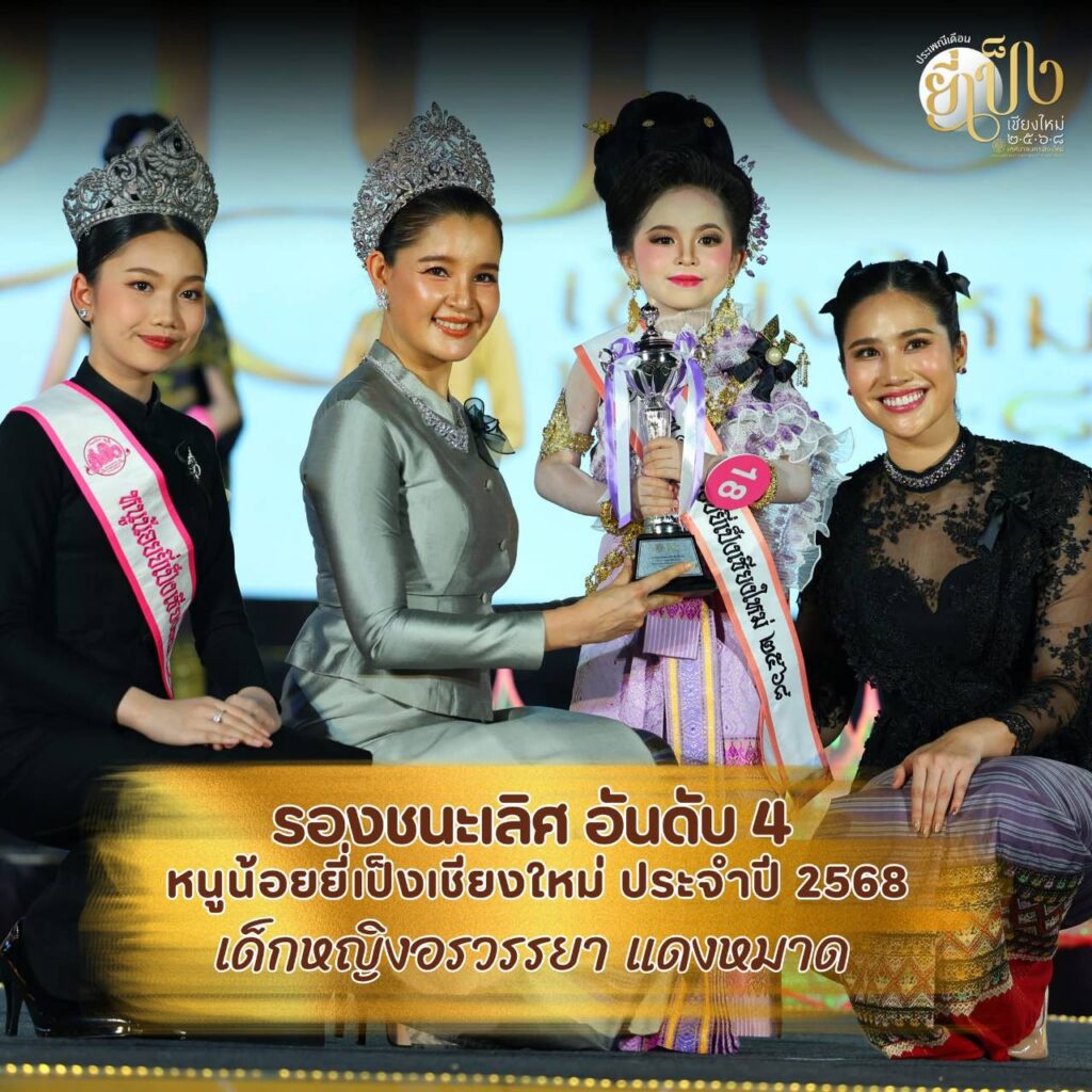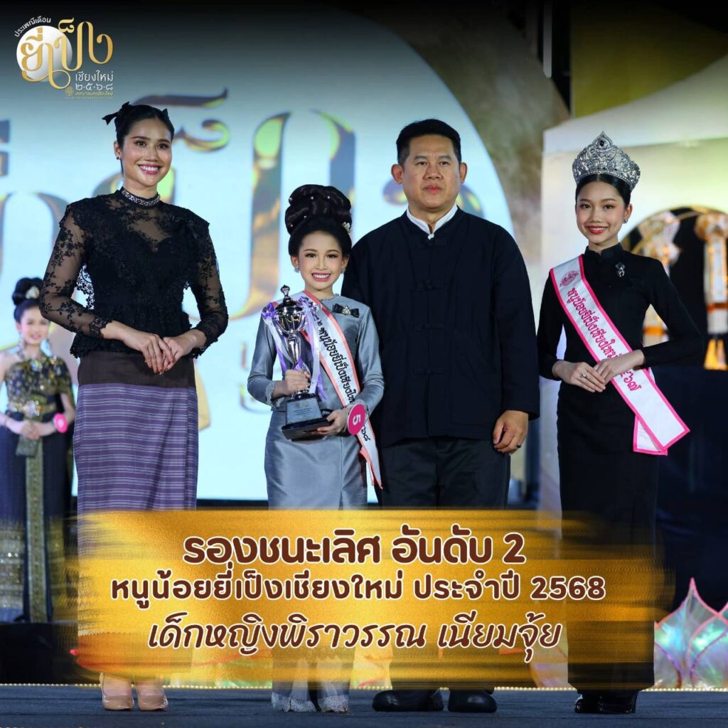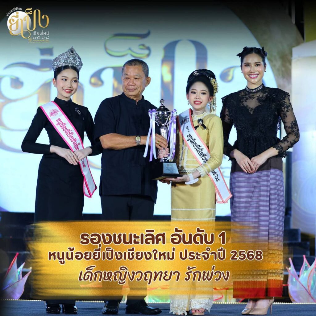 ค่ำคืนแห่งความประทับใจในงานประเพณีเดือนยี่เป็งเชียงใหม่ ประจำปี 2568 ได้มีการจัดพิธีมอบรางวัลการประกวด “หนูน้อยยี่เป็งเชียงใหม่” อย่างเป็นทางการ ณ บริเวณข่วงประตูท่าแพ โดยมีวัตถุประสงค์เพื่อสืบสานและอนุรักษ์วัฒนธรรมอันดีงามของล้านนา