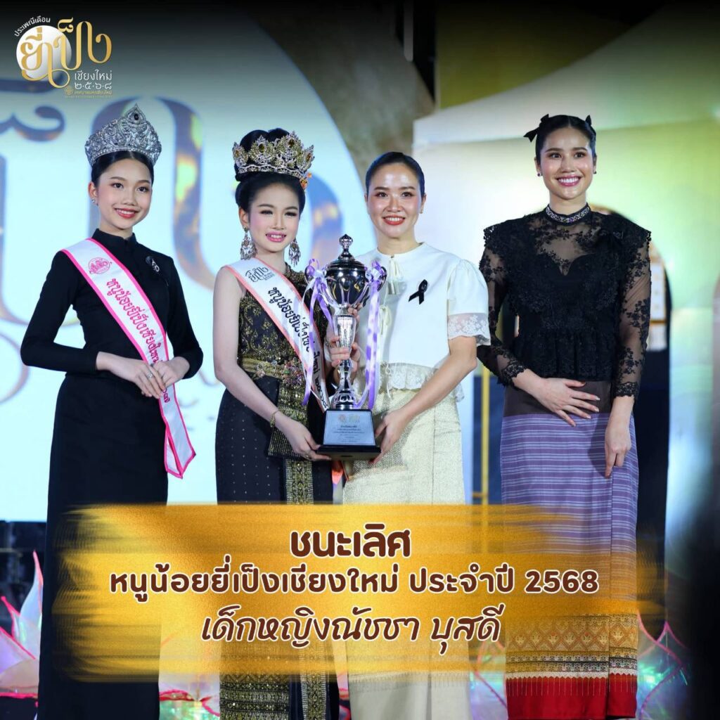 เทศบาลนครเชียงใหม่ สานต่อประเพณีเดือนยี่เป็งอย่างยิ่งใหญ่ “น้องวันใหม่” ด.ญ.ณัชชา บุสดี โชว์ความสามารถและความงามสง่า คว้าชัยชนะการประกวดหนูน้อยยี่เป็ง ประจำปี 2568 ท่ามกลางคณะผู้บริหารและประชาชนร่วมยินดี ณ ข่วงประตูท่าแพ