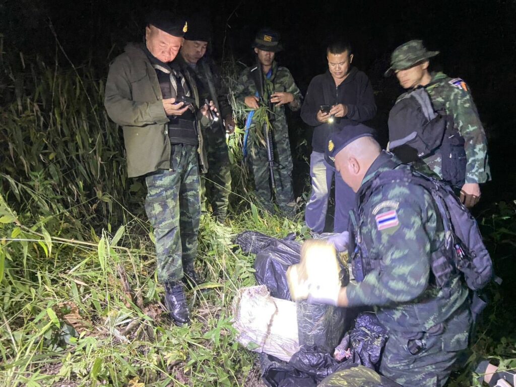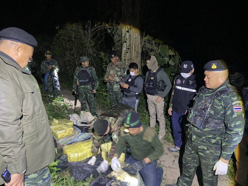 ขณะปฏิบัติหน้าที่ ตรวจพบรถต้องสงสัยเข้ามาในพื้นที่และทำการกลับรถลักษณะผิดสังเกต เจ้าหน้าที่จึงได้จัดกำลังพลเข้าทำการตรวจสอบบริเวณดังกล่าว พบถุงสีดำ จำนวน 6 ถุง คาดว่ารถต้องสงสัยโยนถุงทิ้งแล้วหลบหนี จากการตวรจสอบถุงดังกล่าว พบยาเสพติดให้โทษประเภท 1 (ยาบ้า) จำนวน 1,008,000 เม็ด บรรจุอยู่ภายใน