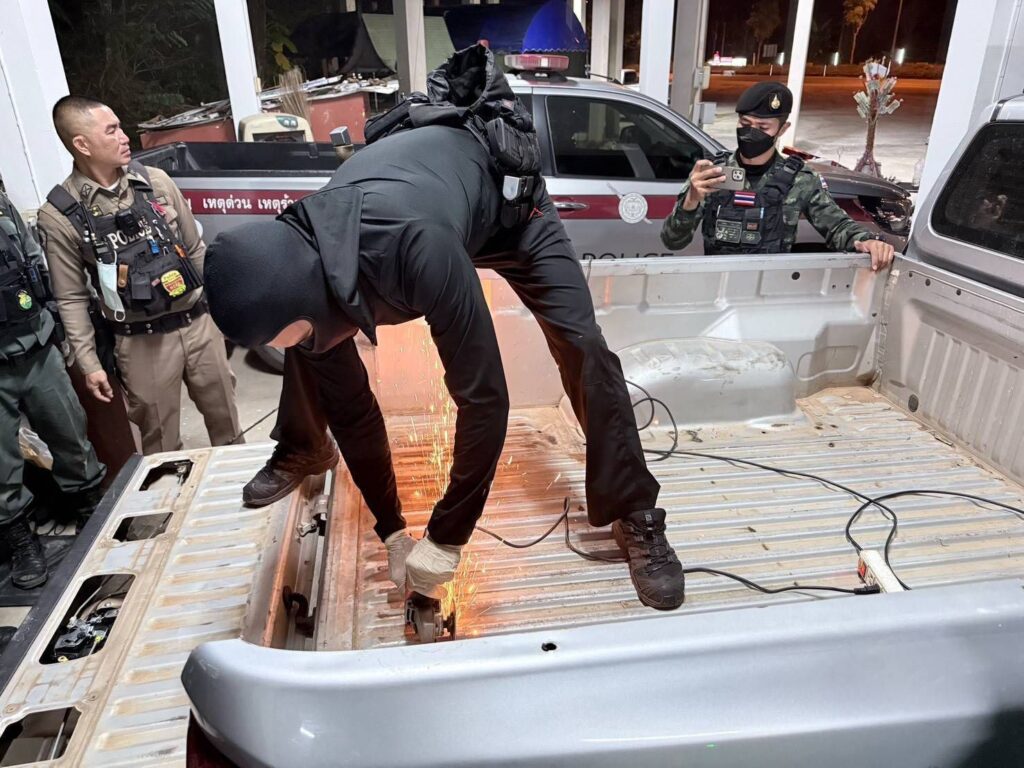 เมื่อวันที่ 4 ธันวาคม 2568 เวลา 21.00 น. กองกำลังผาเมือง โดย หน่วยเฉพาะกิจกรมทหารพรานที่ 31 จัดกำลังพล ร่วมกับ หมวดสุนัขทหารกองกำลังผาเมือง, สถานีตำรวจภูธรแม่จัน และกองร้อยตำรวจตระเวนชายแดนที่ 327 ปฏิบัติหน้าที่เพื่อสกัดกั้นเพื่อป้องกันและสกัดกั้นการกระทำผิดตามพระราชบัญญัติให้ใช้ ประมวลกฎหมายยาเสพติด พ.ศ. 2564 บริเวณ ด่านตรวจกิ่วทัพยั้ง ตำบลแม่จัน อำเภอแม่จัน จังหวัดเชียงราย ในขณะปฏิบัติหน้าที่ ได้เรียกตรวจรถยนต์กระบะ ยี่ห้อ นิสสัน มีผู้ขับขี่ (ชาย) 1 คน และผู้โดยสาร (หญิง) 1 คน มีพฤติกรรมต้องสงสัย เจ้าหน้าที่จึงได้ร่วมทำการตรวจค้นยานพาหนะอย่างละเอียด พบว่าใต้ท้องกระบะมีรอยเชื่อมเกิดขึ้นใหม่ ดัดแปลงเป็นช่องลับ จึงได้ถอดพื้นปูกระบะออก ตรวจพบวัตถุต้องสงสัยลักษณะเป็นมัดก้อนทึบแสง จึงได้ใช้เครื่องมือตัดเหล็กตัวถัง และแผ่นเหล็กใต้ท้องกระบะ
