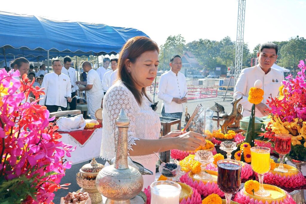 วันนี้ (6 ม.ค. 69) ณ บริเวณด้านหลังศาลากลางจังหวัดเชียงใหม่ อำเภอเมืองเชียงใหม่ จังหวัดเชียงใหม่ ซึ่งเป็นลานจัดงานฯ นายรัฐพล นราดิศร ผู้ว่าราชการจังหวัดเชียงใหม่ พร้อมด้วย นางวิยะดา นราดิศร นายกเหล่ากาชาดจังหวัดเชียงใหม่ นายบุญลือ ธรรมธรานุรักษ์ และนายศิวกร บัวป้อง รองผู้ว่าราชการจังหวัดเชียงใหม่ นำหัวหน้าส่วนราชการ และหน่วยงานที่เกี่ยวข้อง ร่วมประกอบพิธีบวงสรวงตามประเพณี เพื่อความเป็นสิริมงคลและเสริมสร้างขวัญกำลังใจแก่ผู้ปฏิบัติงานก่อนการเปิดงานฤดูหนาว นางสาวเชียงใหม่ และงาน OTOP ของดีเมืองเชียงใหม่ ประจำปี 2569