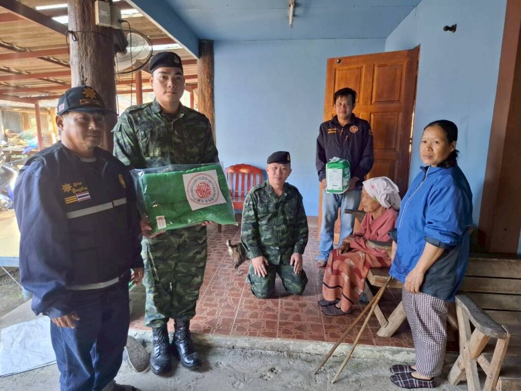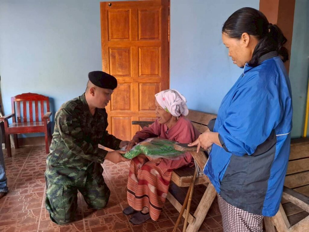 เมื่อวันที่ 6 ม.ค. 69 เวลา 09.00 น. กกล.ผาเมือง/กอ.รมน. ภาค3 สย.2 จัดกิจกรรมมอบผ้าห่มกันหนาวตามโครงการ “กองทัพบกร่วมใจ ต้านภัยหนาว” โดยการลงพื้นที่พบปะเยี่ยมเยียนให้กำลังใจ มอบผ้าห่มกันหนาวและของใช้จำเป็น ให้กับประชาชนกลุ่มเปาะบาง ผู้ยากไร้ ผู้สูงอายุ และผู้ป่วยติดเตียง เพื่อช่วยเหลือและบรรเทาความเดือดร้อนจากสภาพอากาศหนาวเย็น และเป็นการสร้างความสัมพันธ์อันดีระหว่างเจ้าหน้าที่ทหาร กับประชาชน ในพื้นที่ จำนวน 8 ราย ดังนี้