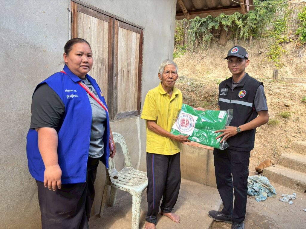 2. โดย ชพส.3203 มอบผ้าห่มกันหนาวให้กับผู้สูงอายุ, ผู้ป่วยติดเตียง และกลุ่มเปราะบาง จำนวน 3 ราย ณ บ.หัวนา หมู่ 6 ต.ม่อนปิ่นอ.ฝาง จว.ช.ม.