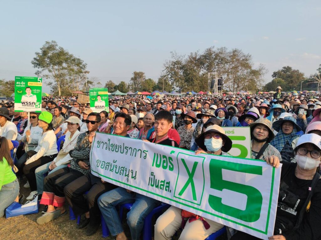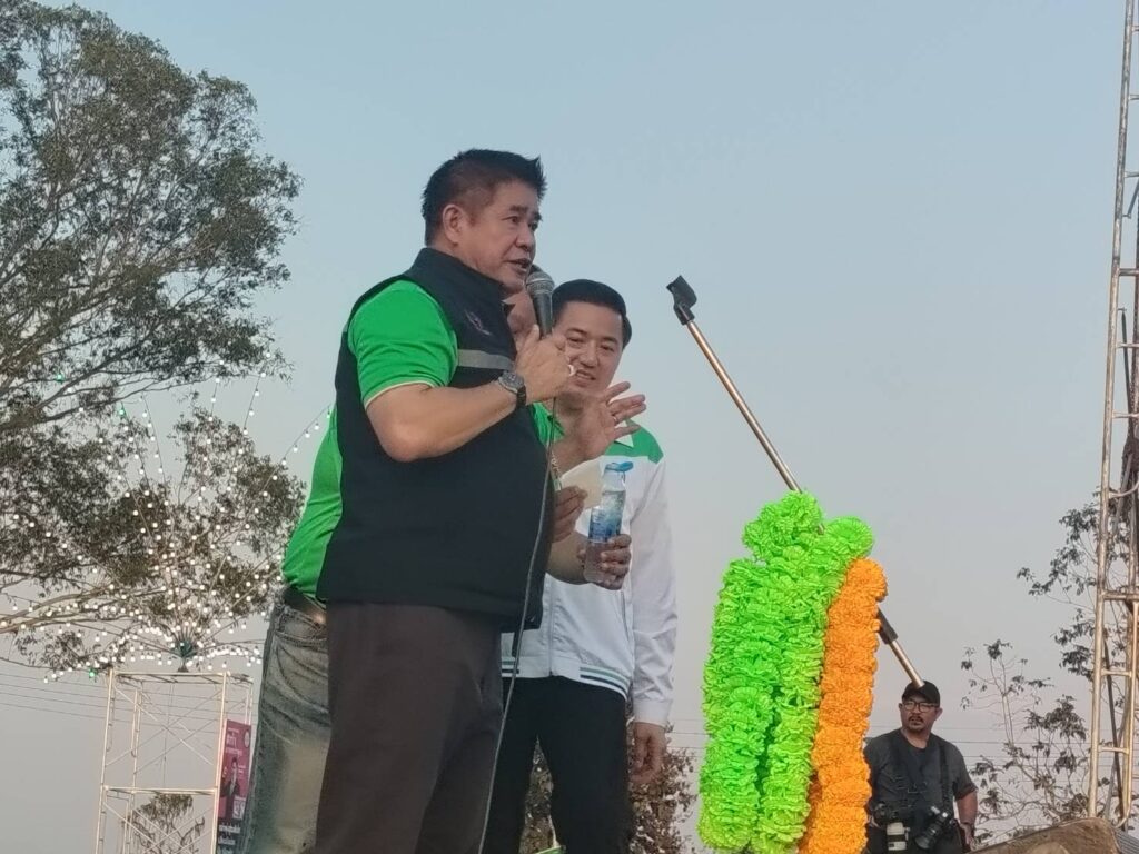 ผู้กองธรรมนัส มาถึงนำ สจ.อุ้ม ผู้สมัคร สส.เขต 7 เบอร์ 5 เดินทักทายชาวบ้าน จากนั้นขึ้นเวทีปราศรัย กล่าวว่า ขอฝาก สจ.อุ้ม เป็นลูกหลายชาว อ.ฝาง ไม่ต้องพูดอะไรมากเพราะทำงานอยู่กับชาวบ้านมาโดยตลอดในภาคท้องถิ่นคือรากเหง้า ดูผลงาน และวันนี้ขอ สจ.อุ้มไปทำงานในสภาฯระดับสูงขึ้น ระดับประเทศ เป็นตัวแทน จะขยับไปเป็น สส.แล้ว ขอให้ชาว อ.ฝาง อ.แม่อาย และ อ.ไชยปราการ เลือกเบอร์ 5 เข้าไปทำงานเป็นตัวแทนของตน ทำงานในสภาฯแทนตนด้วย“