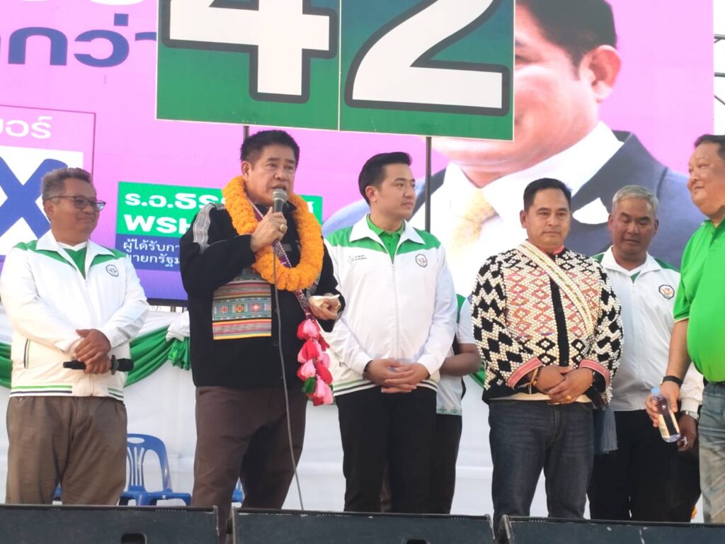 เมื่อเวลา 17.00 น.วันที่ 6 ก.พ.69 ผู้สื่อข่าวรายงานที่สนามกีฬากลาง อ.ฝาง จ.เชียงใหม่ ร้อยเอก ธรรมนัส พรหมเผ่า แคนดิเดตนายกรัฐมนตรี หน.พรรคกล้าธรรม พรรคหมายเลข 42 ได้ลงพื้นที่ อ.ฝาง นำคณะผู้สมัคร สส.แบบบัญชีรายชื่อ และผู้สมัคร สส. คือนายการุณย์ คูเจริญชัยกุล หรือ สจ.อุ้ม พื้นที่ อ.ฝาง อ.แม่อาย อ.ไชยปราการ เปิดเวทีปราศรัย มีชาวบ้านมาฟังปราศรัย จำนวนมาก ประมาณ 25,000 คน