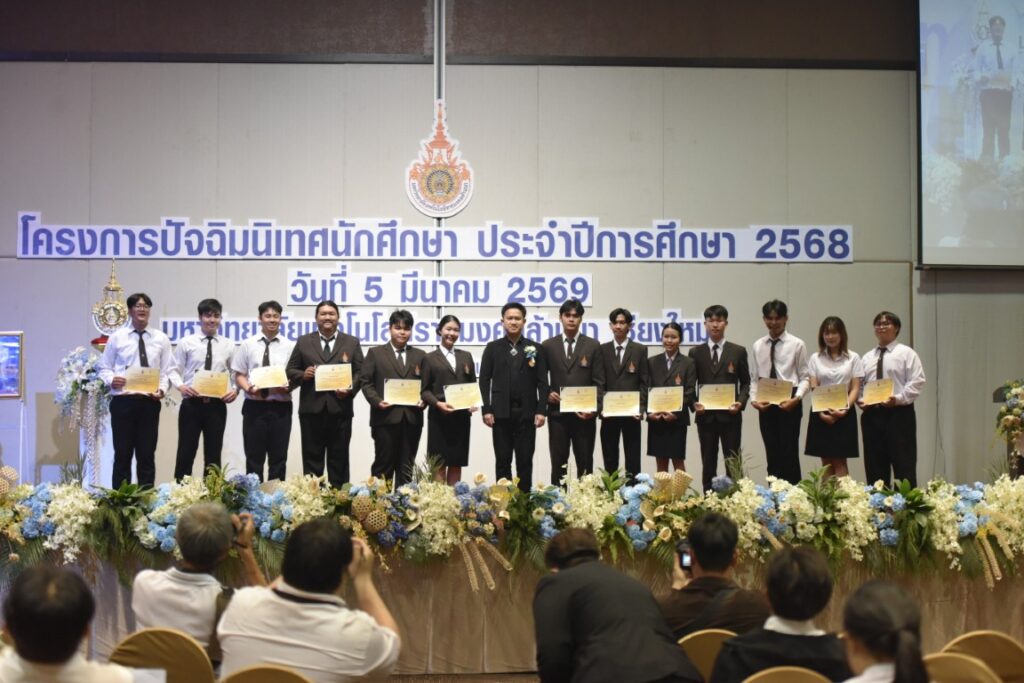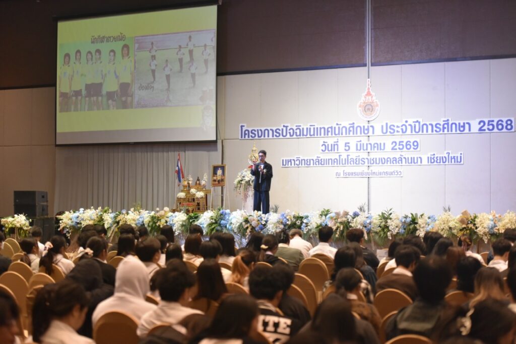 วันที่ 5 มีนาคม 2569 มหาวิทยาลัยเทคโนโลยีราชมงคลล้านนา จัดพิธีปัจฉิมนิเทศนักศึกษา ประจำปีการศึกษา 2568 เพื่อเตรียมความพร้อมให้แก่นักศึกษาชั้นปีสุดท้ายก่อนก้าวเข้าสู่เส้นทางอาชีพอย่างมั่นใจ โดยได้รับเกียรติจาก ผศ. ดร.อรรณพ ทัศนอุดม รักษาราชการแทนอธิการบดี เป็นประธานในพิธี กล่าวให้โอวาทและแนะแนวทางการดำเนินชีวิตในโลกการทำงาน พร้อมมอบประกาศนียบัตรแก่ผู้นำนักศึกษาที่ทำคุณประโยชน์ให้แก่มหาวิทยาลัย