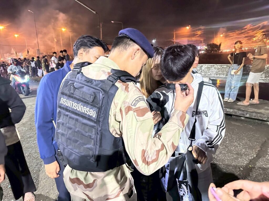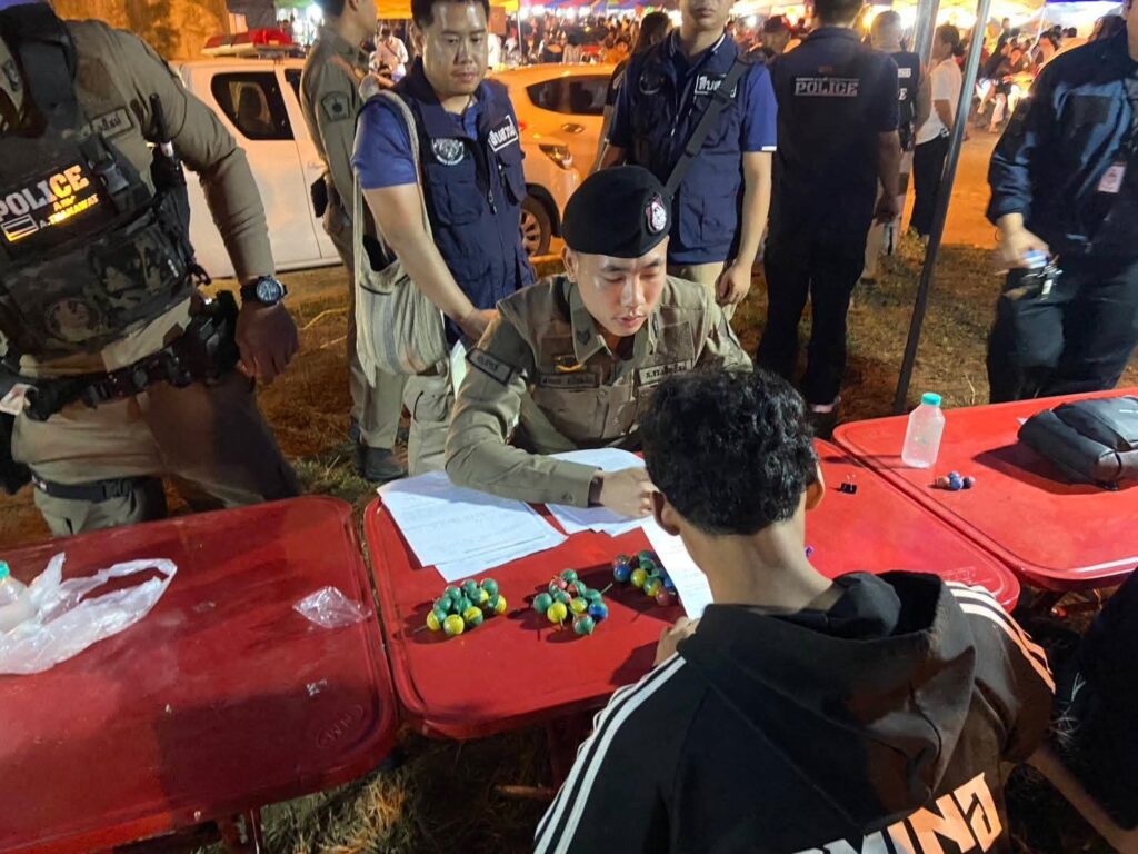 พร้อมกันนี้ยังดำเนินการจับกุมวัยรุ่น และยึดของกลางและจัดทำบันทึกตรวจยึดจากกลุ่มวัยรุ่น สามารถอธิบายและจำแนกของกลางได้ ประกอบด้วย ผู้เล่นดอกไม้เพลิง และประทัดปิงปอง จำนวน 13 ราย พลุดอกไม้ไฟ 39 กระบอก ประทัดปิงปอง 345 ลูก และ ปืนพลุ 9 กระบอก ส่งดำเนินคดี