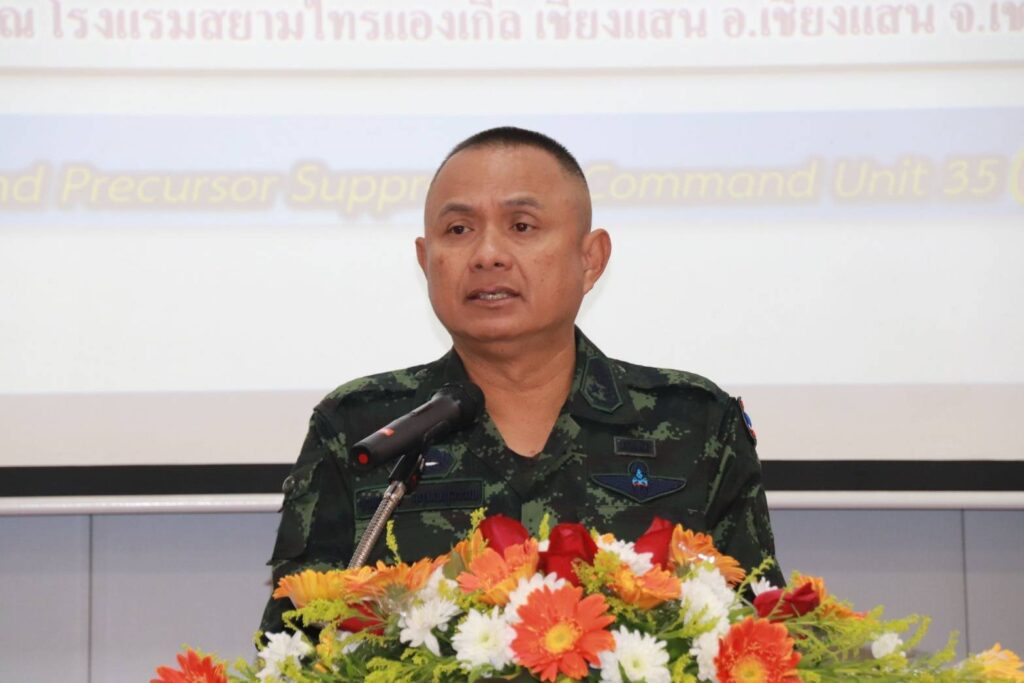 เมื่อวันที่ 6 -7 มกราคม 2569 พลโท ชายแดน กฤษณสุวรรณ รอง ผบ.นบ.ยส.35 ร่วมกับสำนักงาน ปปส. ภาค 5 จัดประชุมเชิงปฏิบัติการกำกับติดตามและเพิ่มประสิทธิภาพการปฏิบัติงานตามแผนสกัดกั้นและปราบปรามยาเสพติด สารตั้งต้น และเคมีภัณฑ์ ในพื้นที่ชายแดนภาคเหนือ ประจำปีงบประมาณ พ.ศ. 2569 (ไตรมาสที่ 1) ณ โรงแรมสยามไทรแองเกิ้ล อำเภอเชียงแสน จังหวัดเชียงราย