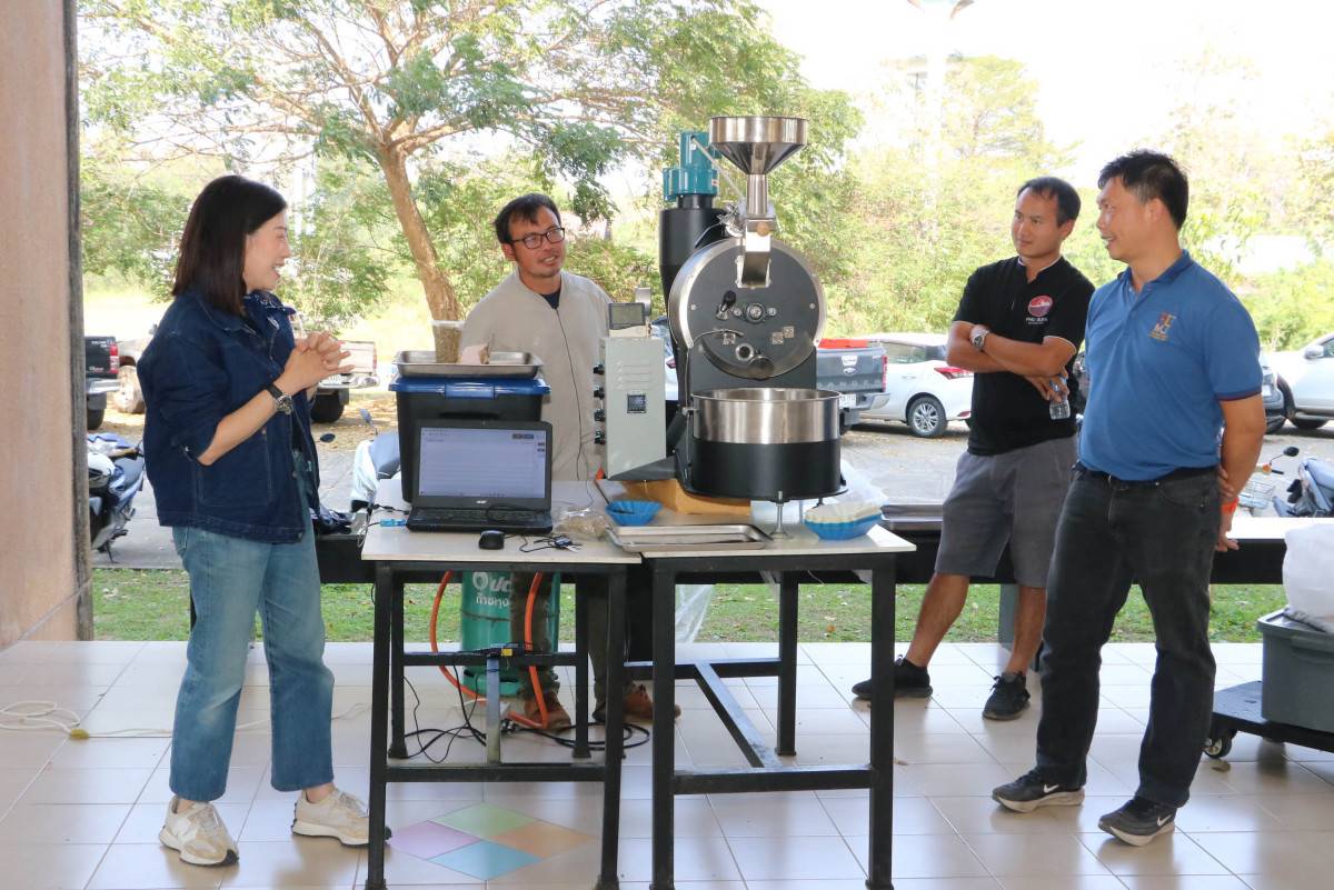 ต่อยอดจากการอบรม “พัฒนาผู้ประกอบการกาแฟ Workshop Sensory Analysis coffee Skills” ที่ผ่านมา โดยมีวัตถุประสงค์ให้ผู้ประกอบการในพื้นที่จังหวัดลำปางและจังหวัดเชียงราย เข้ารับการฝึกอบรม สำหรับเครื่องคั่วกาแฟที่นำมาฝึกอบรมให้ผู้ประกอบการครั้งนี้ เป็นเครื่องคั่วกาแฟขนาดเล็ก เพื่อทดสอบคุณภาพกาแฟโดยเครื่องสามารถแสดงผลการทำงานขณะคั่วทางคอมพิวเตอร์เพื่อให้ได้กาแฟที่มีคุณภาพในแต่ละครั้ง