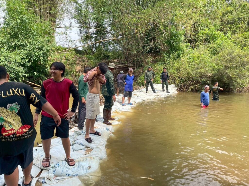 เมื่อวันที่ 7 เม.ย. 68 เวลา 09.00 น. กกล.ผาเมือง โดย ชป.กร.315 กกล.ผาเมือง บูรณาการร่วมกับ ผู้นำหมู่บ้าน และประชาชน ต.ภูซาง จัดกิจกรรมขับเคลื่อนเครือข่ายการมีส่วนร่วมในการแก้ไขปัญหาภัยแล้ง และอุทกภัย ตามแผนปฏิบัติการป้องกันภัยชุมชน โดยการสร้างฝายชะลอน้ำ (ฝายชั่วคราว) เพื่อชะลอความแรงของน้ำ, กักเก็บน้ำสำหรับอุปโภคบริโภค และใช้ในการเกษตรในพื้นที่ ณ บ.ผาลาด ม.7 ต.ภูซาง อ.ภูซาง จว.พ.ย. มีผู้ร่วมกิจกรรมจำนวน 70 คน