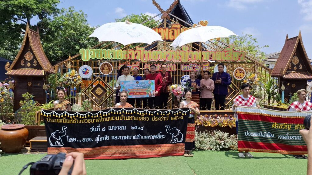 โดยนายเขตพงศ์ กุลนาถศิริ รองนายกองค์การบริหารส่วนจังหวัดสุโขทัยทั้งนี้นายนายเอกสิฏฐ์ วิไลศิลป์ นายอำเภอศรีสัชนาลัยได้กล่าวต้อนรับประธานพิธีพร้อมผู้มีเกียรตินายณรงค์ ผันพักตร์ ปลัดเทศบาล ปฏิบัติหน้าที่นายกเทศมนตรีตำบลหาดเสี้ยวได้กล่าวรายงานการจัดงานประเพณีแห่ช้างบวชนาคไทยพวนบ้านหาดเสี้ยวประจำปี2568เป็นปีที่181ที่เป็นอัตลักษณ์ประเพณีของชาวไทยพวนบ้านหาดเสี้ยวอำเภอศรีสัชนาลัยจังหวัดสุโขทัย.และขบวนแห่ช้างได้เริ่มจากวัดบ้านหาดเสี้ยวเข้าสู่ถนนเทศบาลบ้านหาดเสี้ยวผ่านปะรำพิธีหน้าตลาดโดยมีนาย นพฤทธิ์ ศิริโกศล ผู้ว่าราชการจังหวัดสุโขทัยประธานพิธีได้ให้อาหารช้างด้วยพร้อมแขกผู้มีเกียรตินั่งชมทั้งนี้เวลา15.30น.ขบวนแห่ช้างบวชนาคได้เดินถึงสะพานซึ่งเป็นไฮไลท์ของงานนี้คือขบวนแห่ช้างได้เลี้ยวลงข้ามแม่น้ำยมขึ้นอีกฝั่งบ้านใหม่ซึ่งเป็นความสวยงามช้างจะเดินเป็นขบวนพร้อมแยกย้ายไปบ้านเจ้าภาพต่อไปอนึ่งงานแห่ช้างไทยพวนบ้านหาดเสี้ยวได้จัดมาเป็นปี181แล้วไทยพวนบ้านเสี้ยว