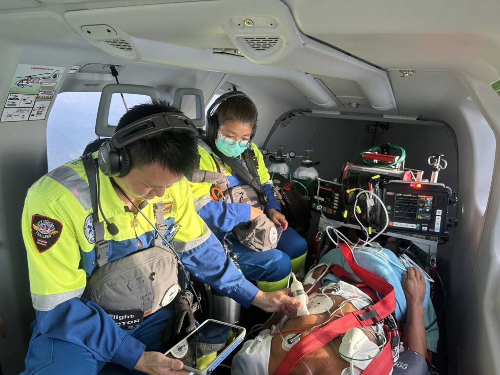 เมื่อวันที่ 7 พ.ค. 68 เวลา 16.35 น. กกล.ผาเมือง โดย ชปบ.ทบ.กกล.ผาเมือง จัด ฮ.ท.145 จำนวน 1 เครื่อง สนับสนุนสถาบันการแพทย์ฉุกเฉินแห่งชาติ (สพฉ.) รับผู้ป่วยฉุกเฉินทางอากาศ เพศชาย อายุ 70 ปี โรคกล้ามเนื้อหัวใจขาดเลือด (STEMI) จาก รพ.แม่สะเรียง อ.แม่สะเรียง จ.แม่ฮ่องสอน เพื่อเข้ารับการรักษาพยาบาลต่อที่ รพ.นครพิงค์ อ.แม่ริมจ.เชียงใหม่ ใช้เวลาบิน ประมาณ 40 นาที (ถ้าลำเลียงทางรถยนต์จะใช้เวลาประมาณ 4 – 5 ชั่วโมง) ผู้ป่วยปลอดภัย