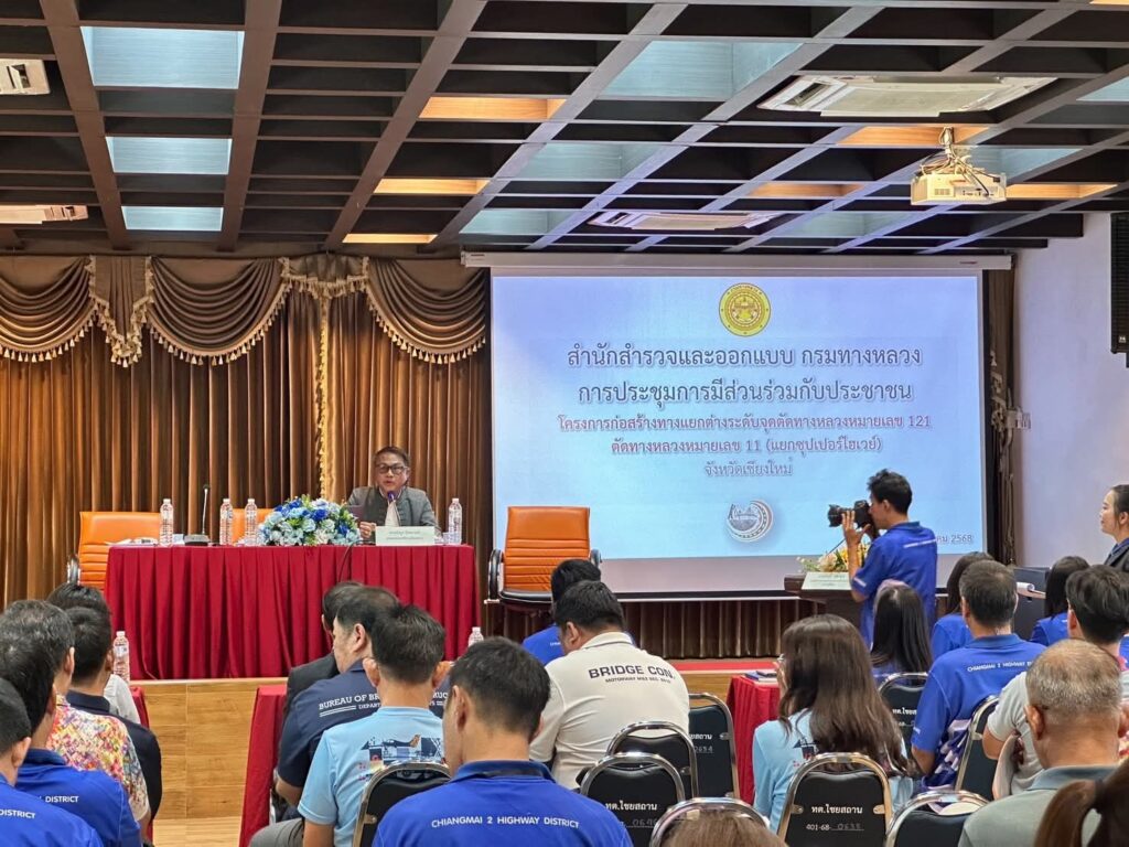 เชียงใหม่-เทศบาลตำบลไชยสถาน ประชุมการมีส่วนร่วมของประชาชน โครงการก่อสร้างทางแยกต่างระดับจุดตัดทางหลวง